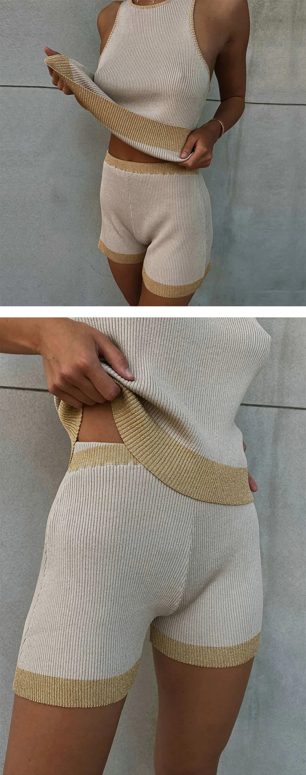 BOOFEENAA Comfy Knitted Lounge Wear Two Piece Set Women Summer Outfits Tank Top and Shorts Matching Sets 2021 C34-CF24