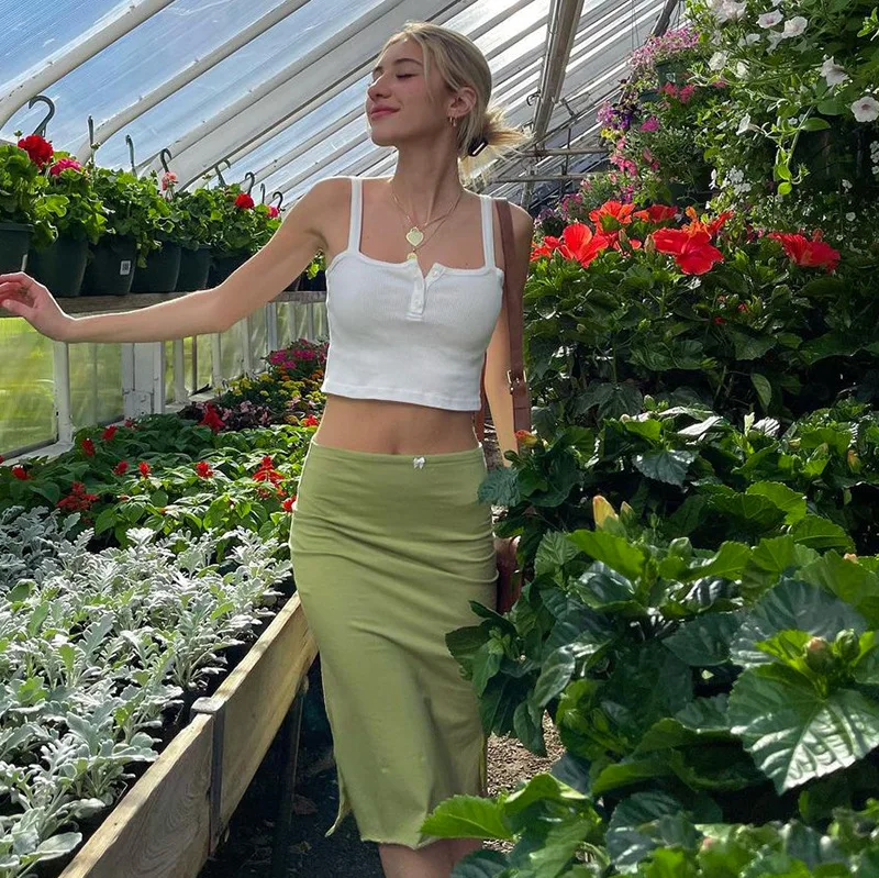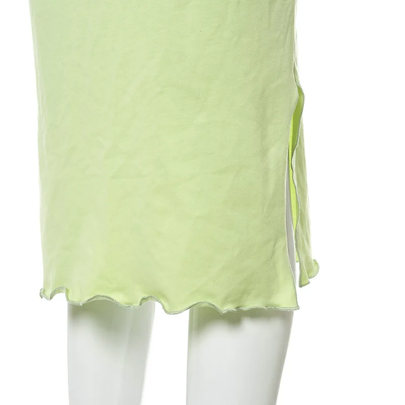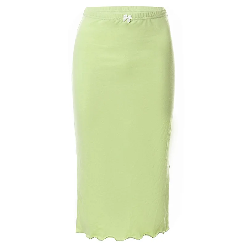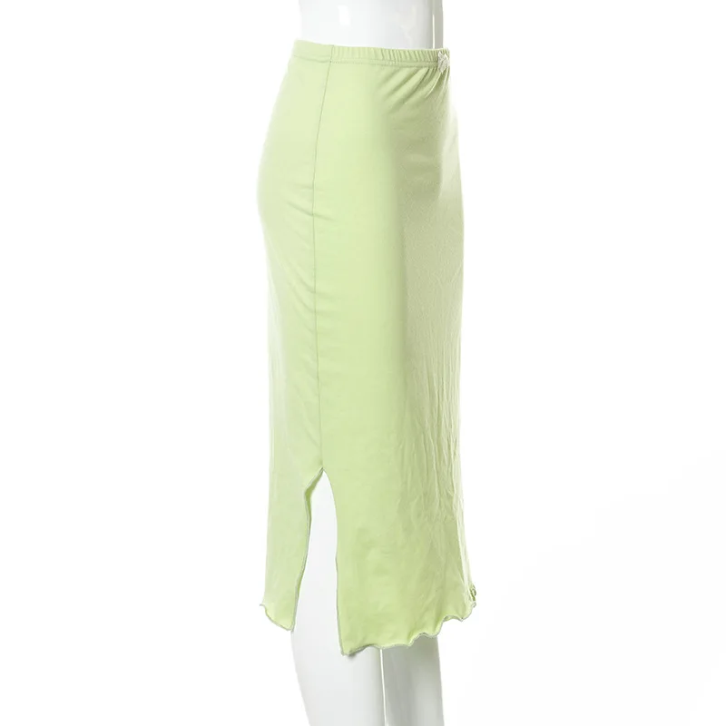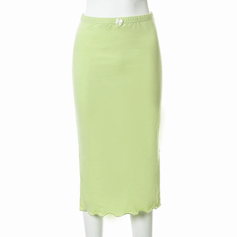 Bow High Waist Midi Y2K skirts 2021 summer Outfits Streetwear Sexy Bodycon Slit Green long skirts for women Asymmetrical