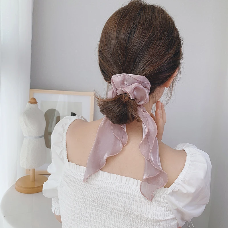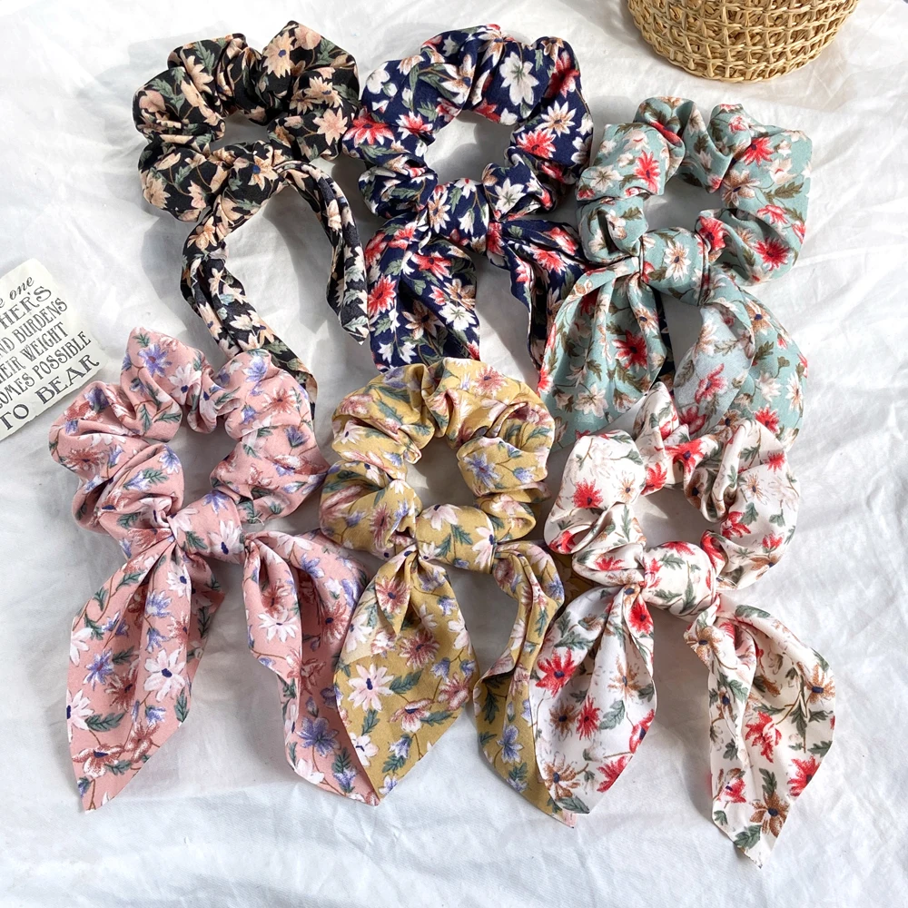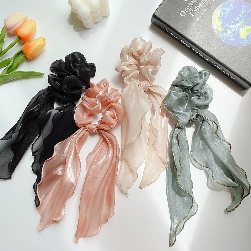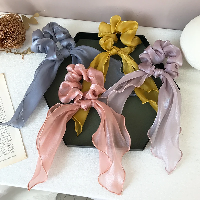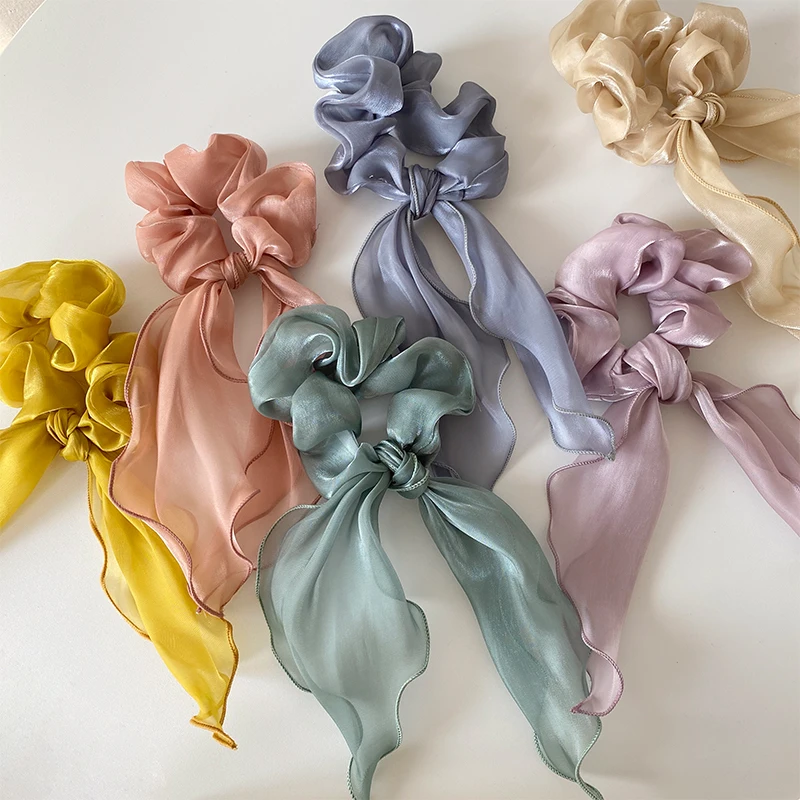 Candy Color Women Hair Scrunchie Bows Ponytail Holder Hairband Bow Knot Scrunchy Girls Hair Ties Hair Accessories Christmas