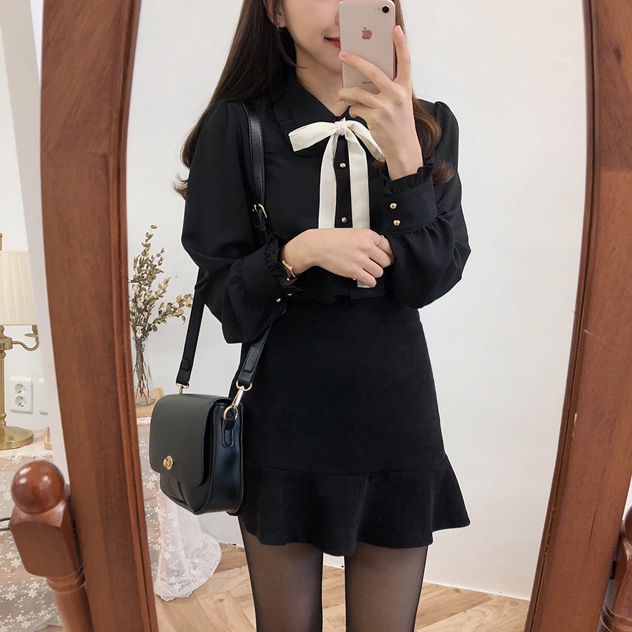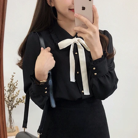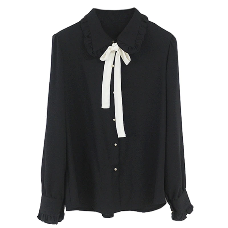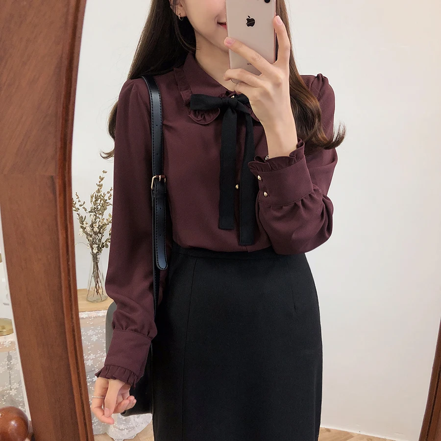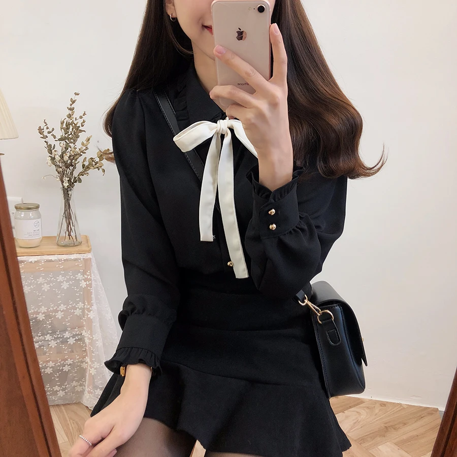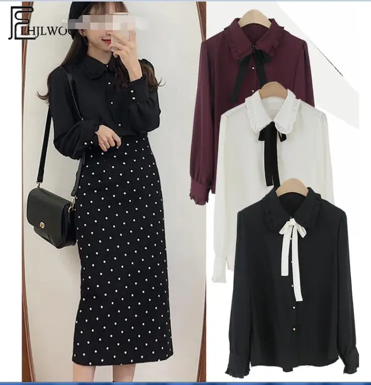Chiffon Blouses Shirts New Hot Sales Preppy Style Girls Bow Tie Tops Cute Sweet Korean Temperament Lady Peter Pan Collar Shirt