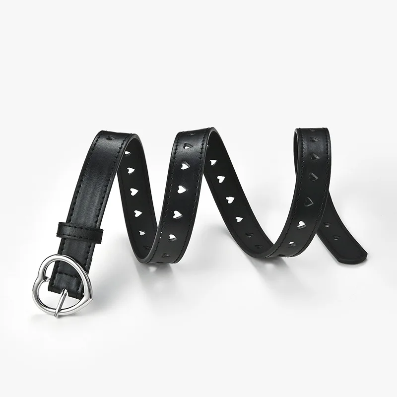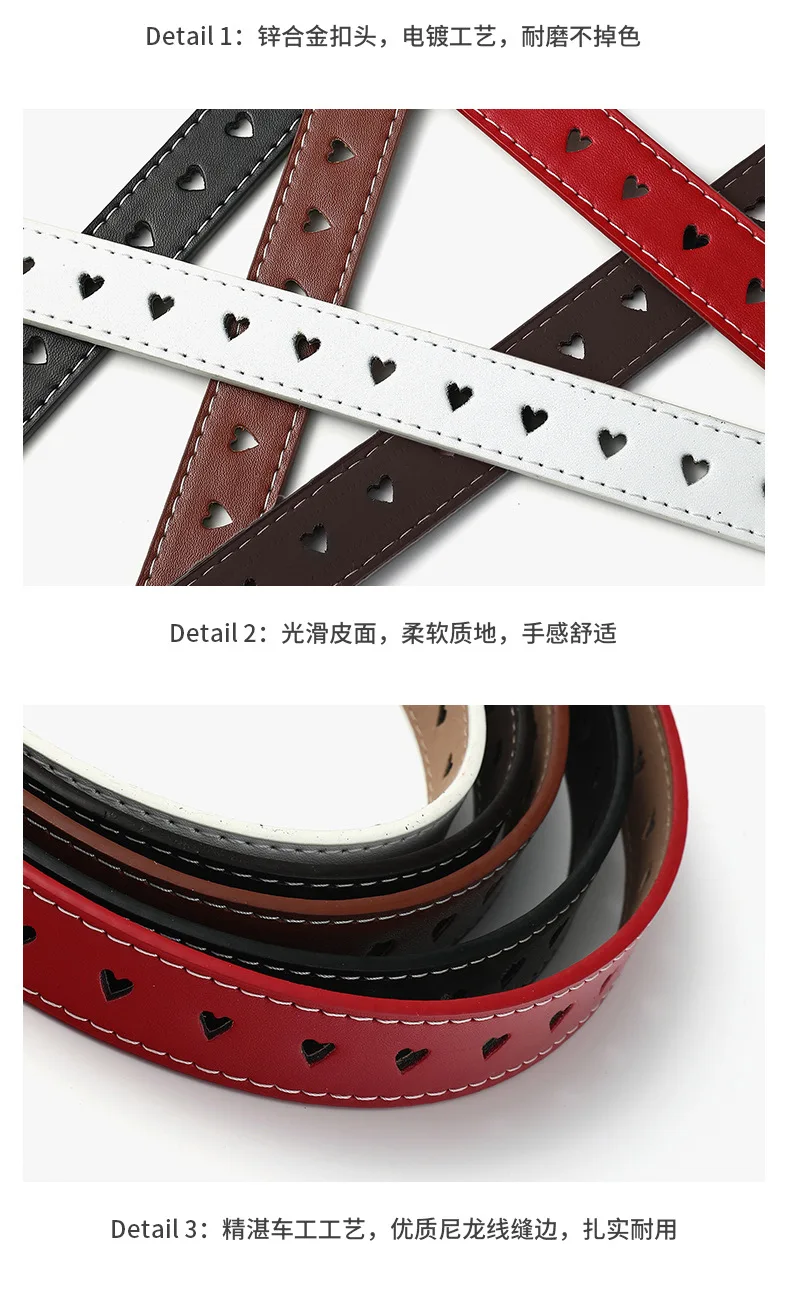 Children Faux Leather Belt Kids Cute Peach Heart Buckle Belts For Girls Solid Waistband Love Heart Eyelet Grommet Waist Belt