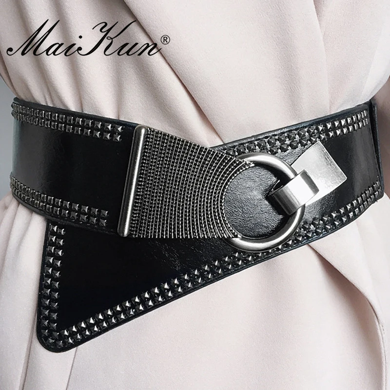 Christmas 2020 Maikun Fashion Punk Rocker Wide Belts for Women Elastic Wide European Style Women Belts Metal Round Buckle