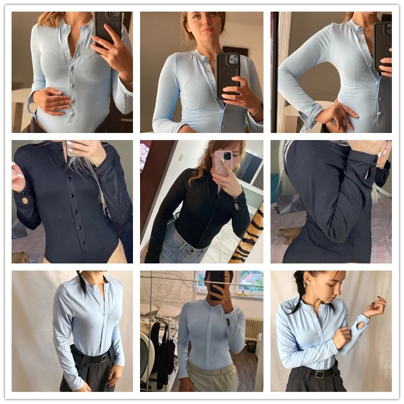 CNYISHE 2020 Fashion Casual Button Rompers Women Bodysuits Winter Long Sleeve O-neck Ribbed Skinny Jumpsuits Streetwear Body Top
