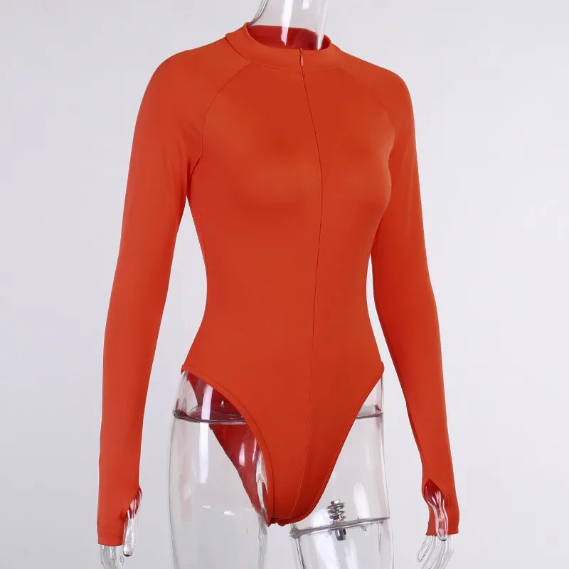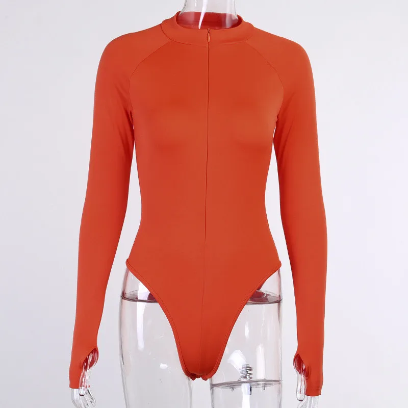CNYISHE Overalls Zipper Long Sleeve Bodycon Bodysuit For Woman Pure Winter Rompers Women Jumpsuits Sexy Body Female Black Tops