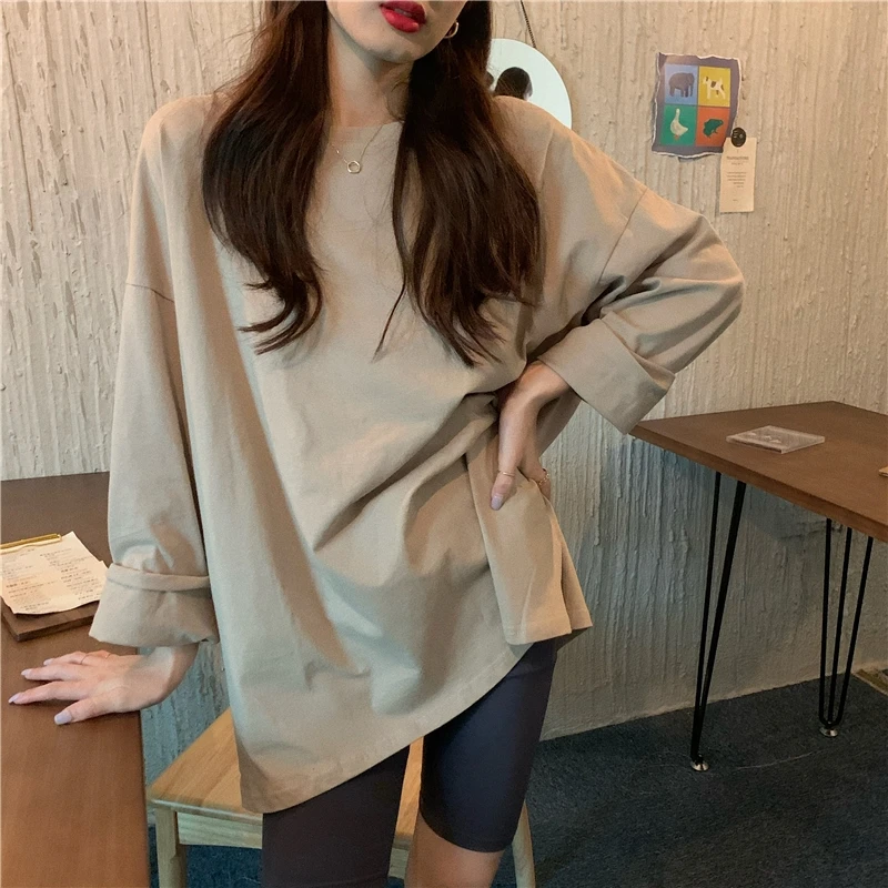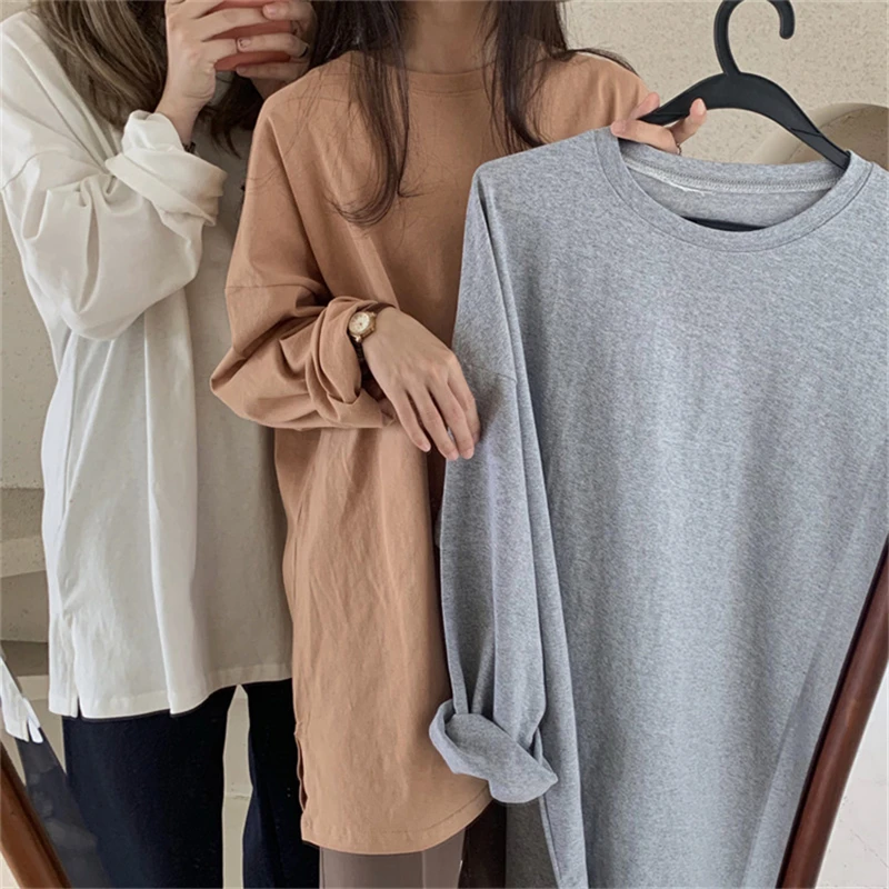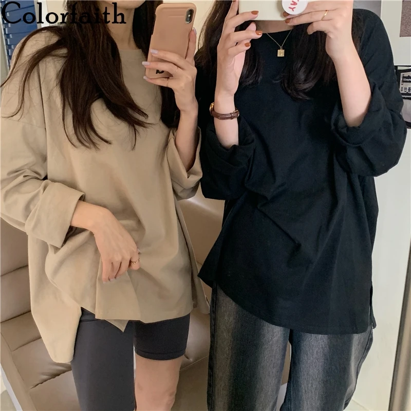 Colorfaith New 2021 Autumn Trend T-Shirts Oversized Solid Bottoming Long Sleeve Wild Korean Minimalist Style Tops T601
