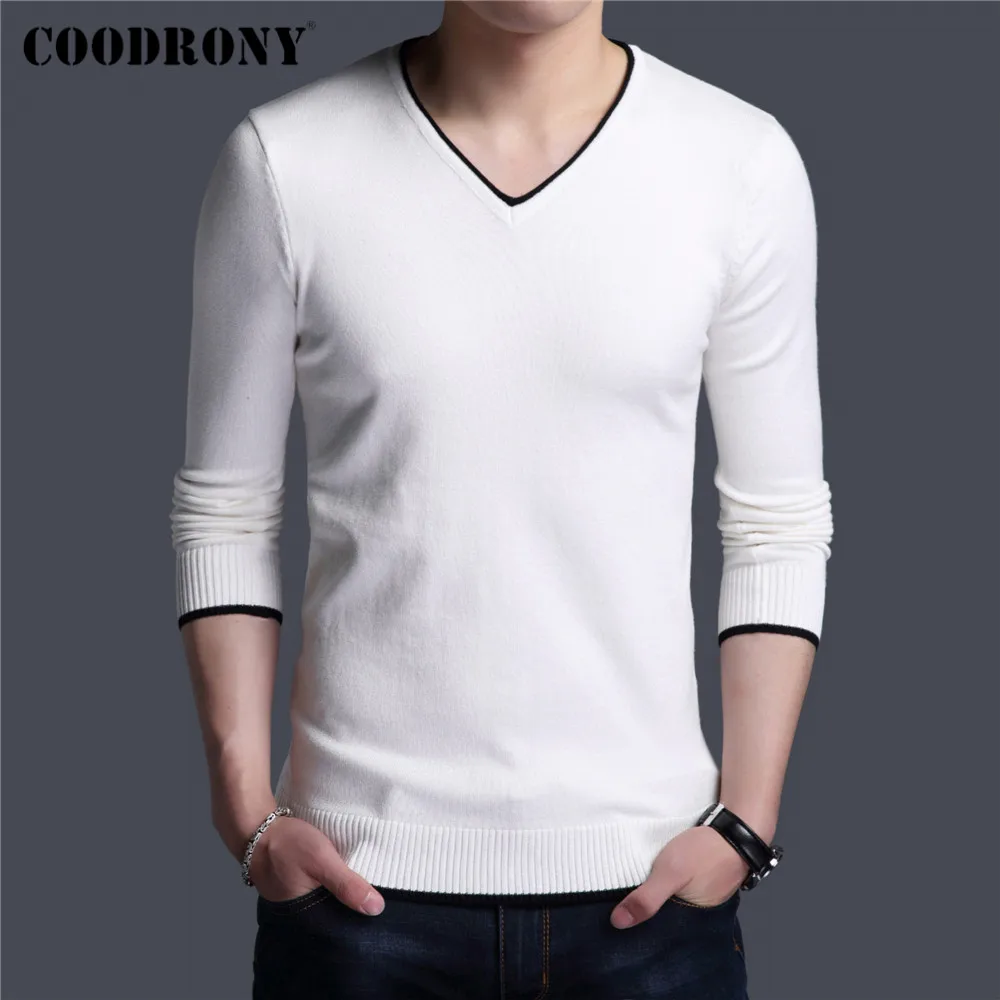 COODRONY Brand Spring Autumn New Arrival Soft Cotton Sweater Casual V-Neck Pull Homme Knitwear Pullover Men Clothes Jersey C1001