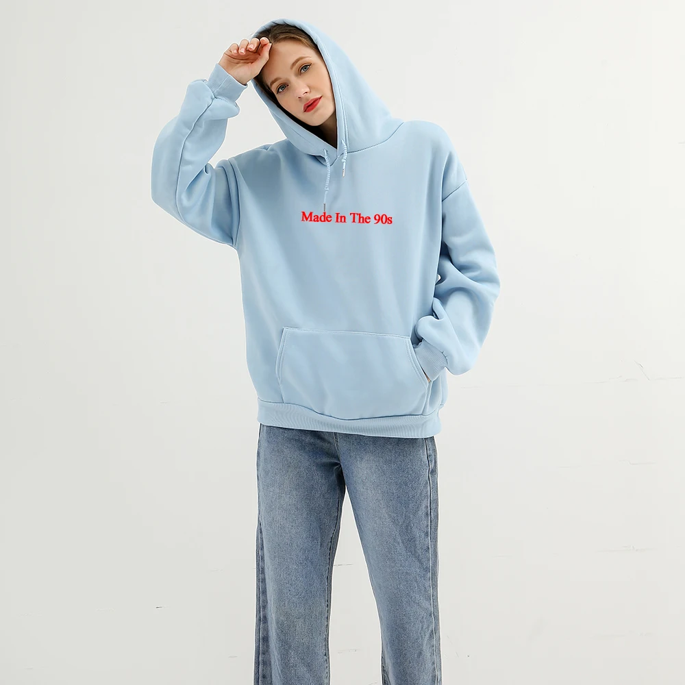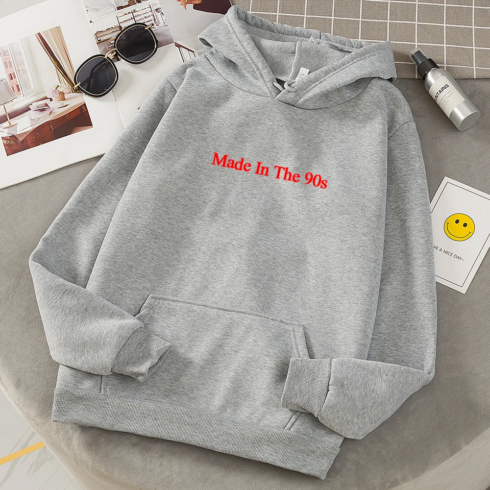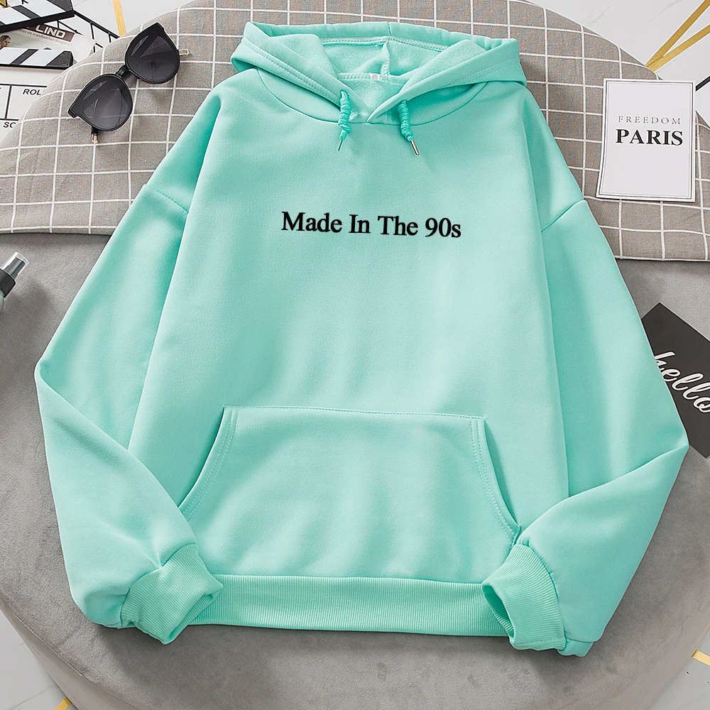 Cool Oversized Women Hoodies Made In The 90s Letter Print Sweatshirt Womens Winter Warm Streetwear Pullovers Thick Hoodie