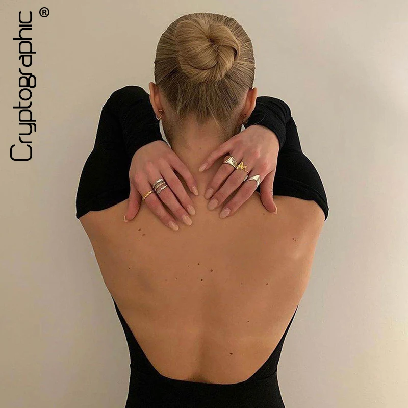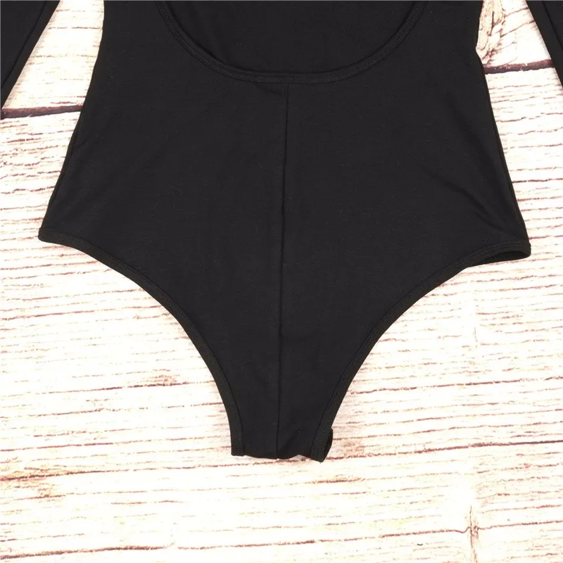 Cryptographic black fitness sexy women bodysuit backless long sleeve rompers womens jumpsuit hollow out slim body feminino
