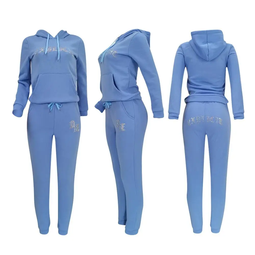 Diamonds Tracksuit 2 Piece Set Women Oversize Hoodies Sweatshirt Sweatpants Joggers Sport Pant Suits Femme Outfits Sweatsuits