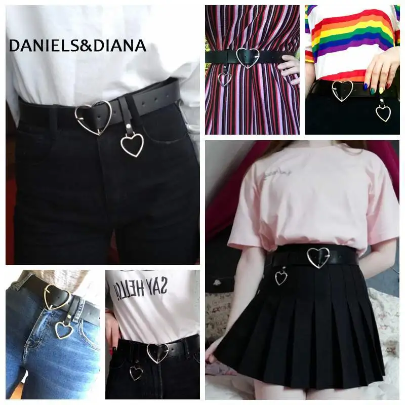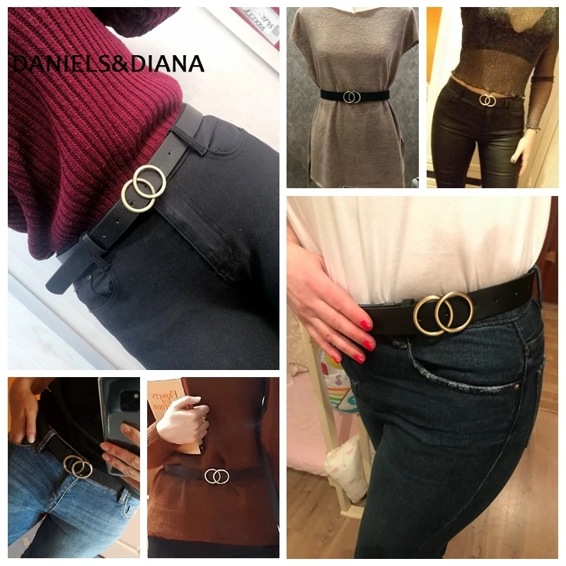 Double Ring Women Belt Fashion Waist Belt PU Leather Metal Buckle Heart Pin Belts For Ladies Leisure Dress Jeans Wild Waistband