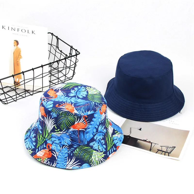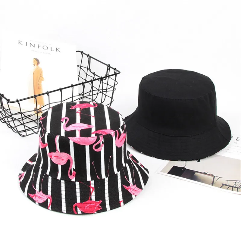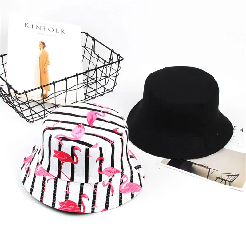 Double Side Unisex Flamingo Bucket Hat Women Outdoor Hiking Cap Men Bucket Fishing Caps Sunscreen Panama Fisherman Hats 032
