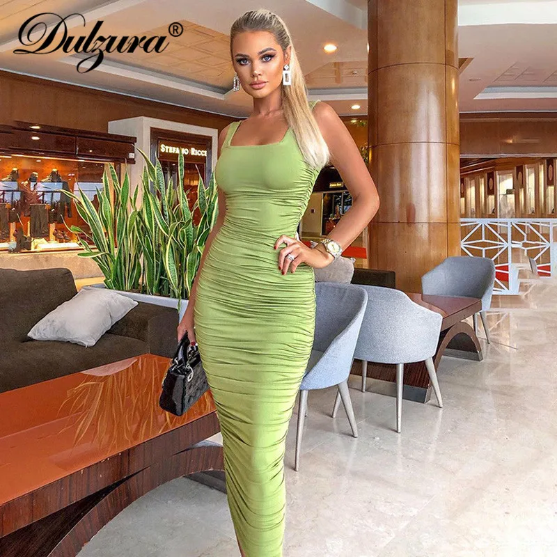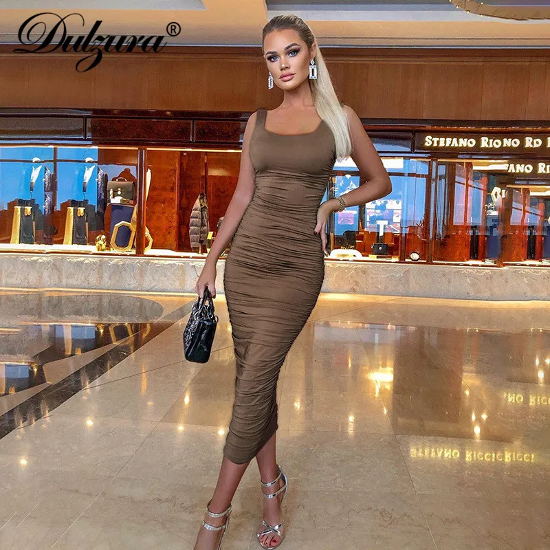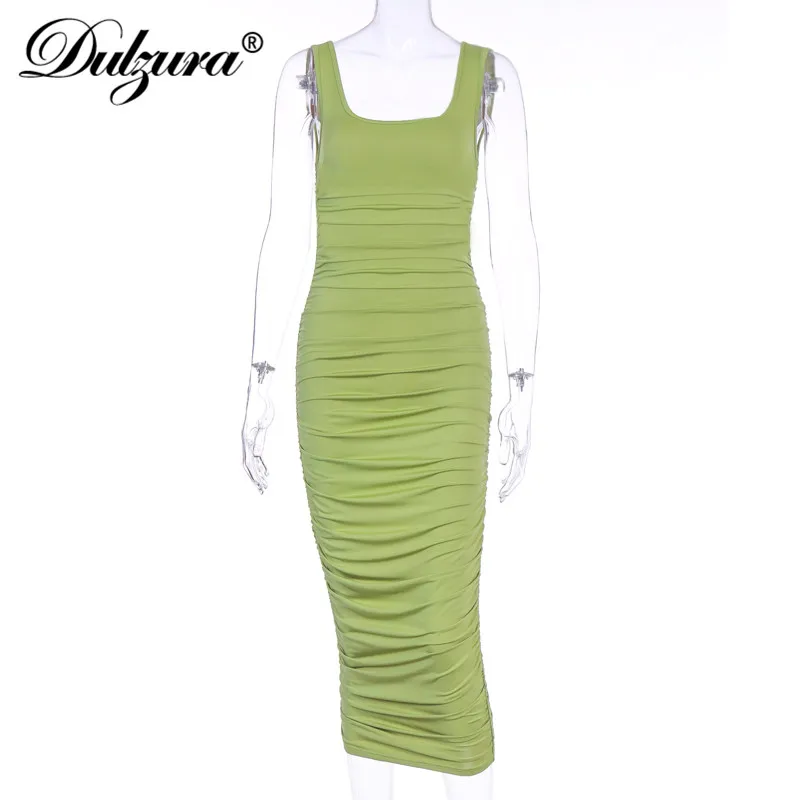 Dulzura ruched women midi shirt dress bodycon sexy sleeveless elegant party backless streetwear 2020 spring summer clothes club