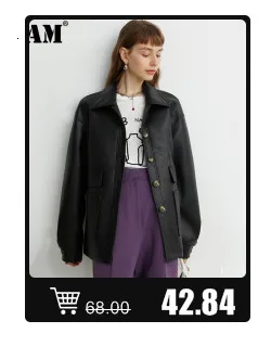 [EAM] High Quality 2021 Spring Black PU Leather Loose Turn-down Collar Zipper Fashion New Women’s Wild Jacket LA938