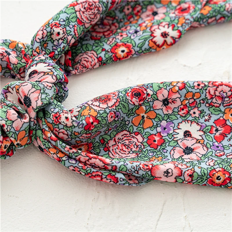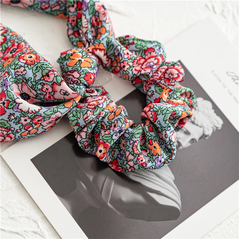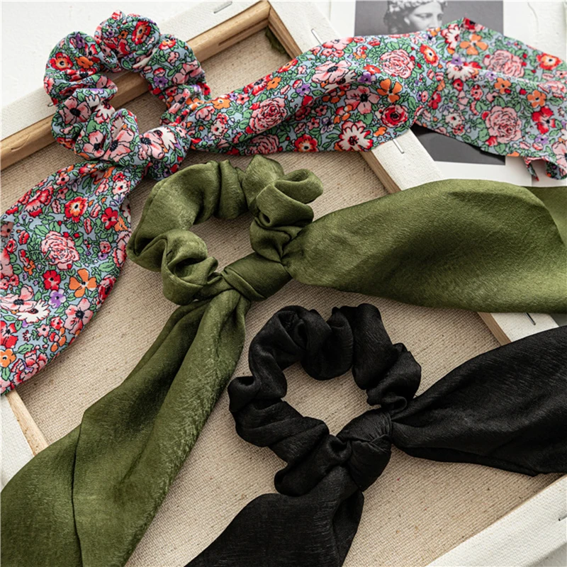 Fashion Floral Print Scrunchies Solid Color Hair ribbon For Women Ponytail scarf Satin Silk Elastic Hair Bands Hair Accessories
