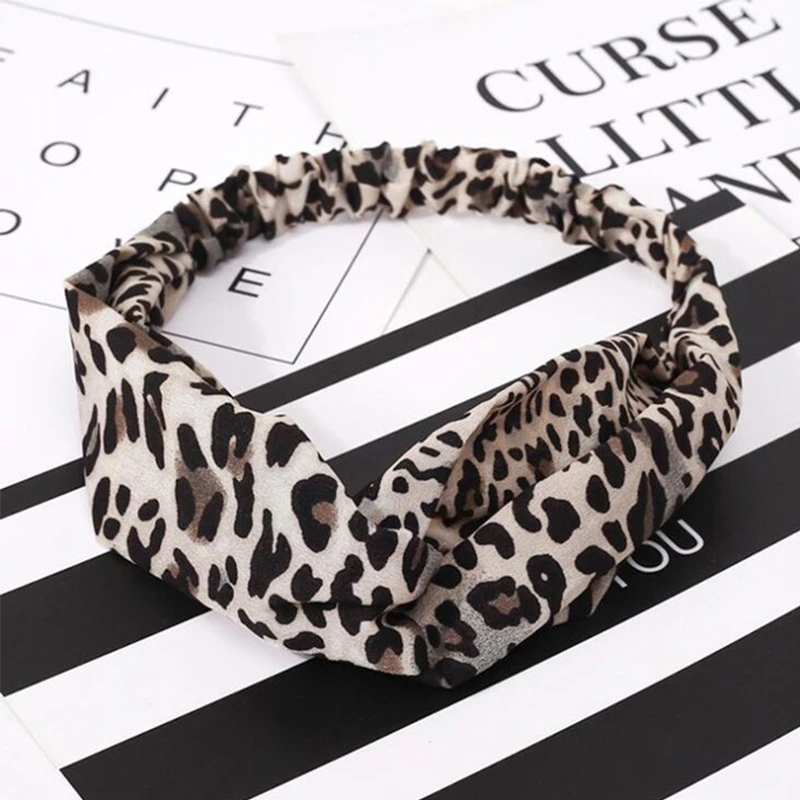 Fashion Floral Women Headband Hair Accessories Leopard Cross Knotted Bow Chiffon Hair Band Boho Headdress Ladies Hoop Headwear