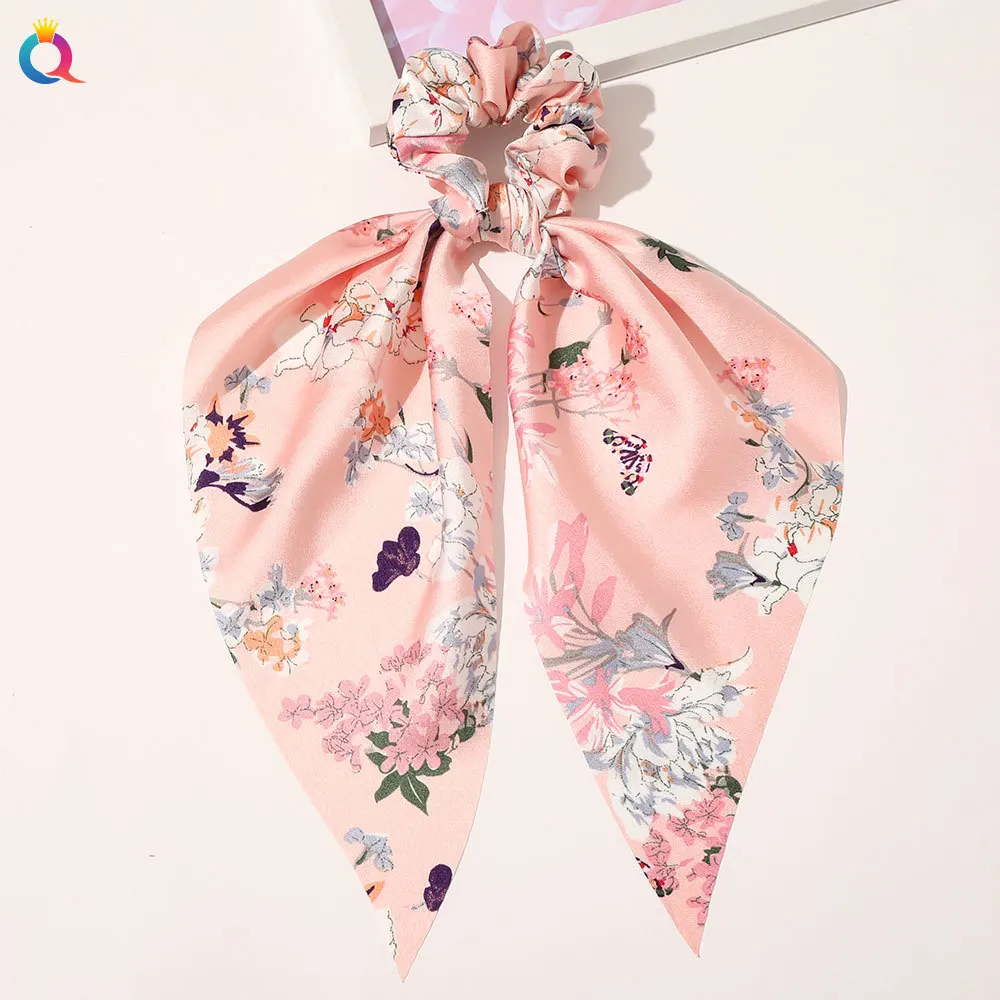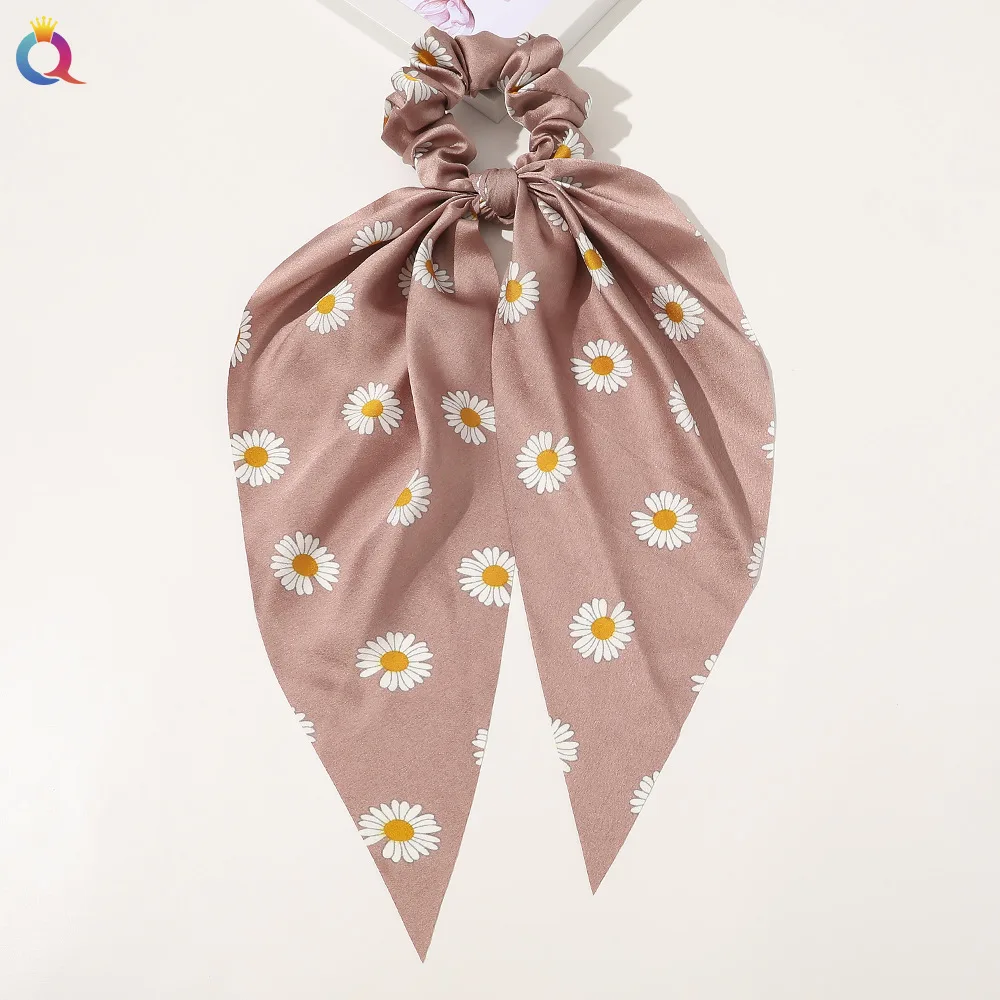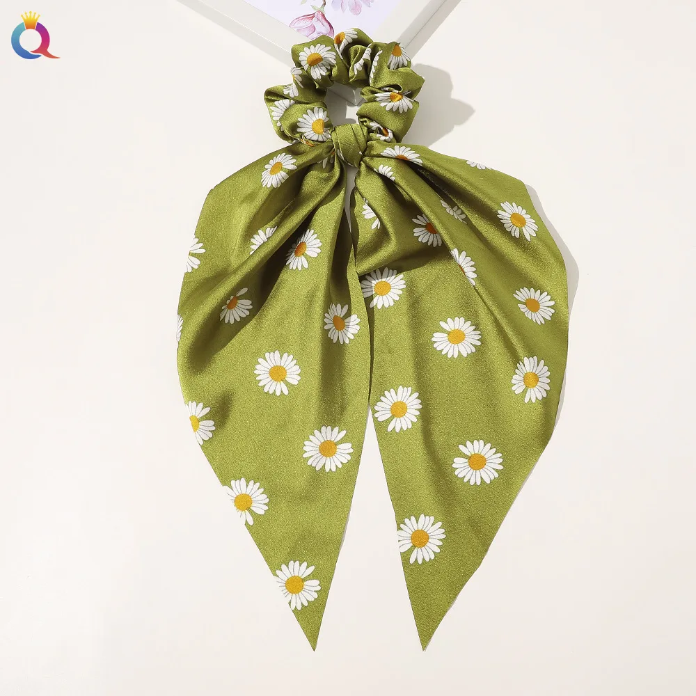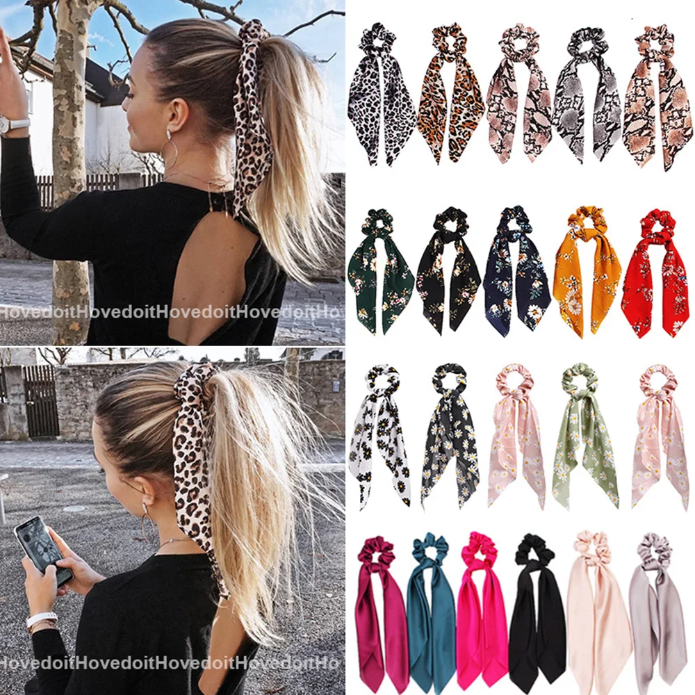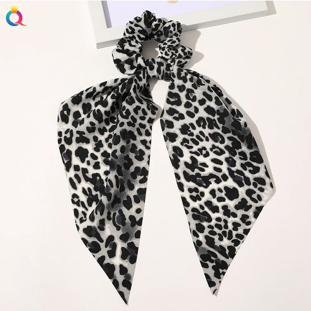 Fashion Leopard Print Bow Satin Long Ribbon Ponytail Scarf Hair Tie Scrunchies Women Girls Elastic Hair Bands Hair Accessories