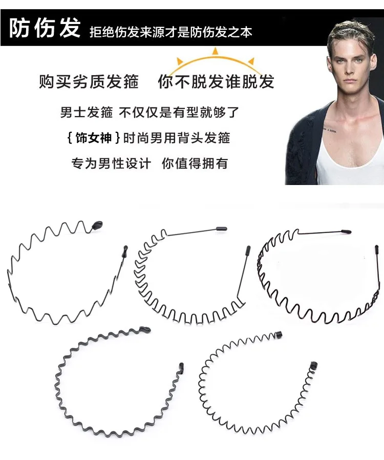 Fashion Mens Hairband Unisex Black Wavy Hair Head Hoop Band Women Sport Headband Hair Accessories 2021 New