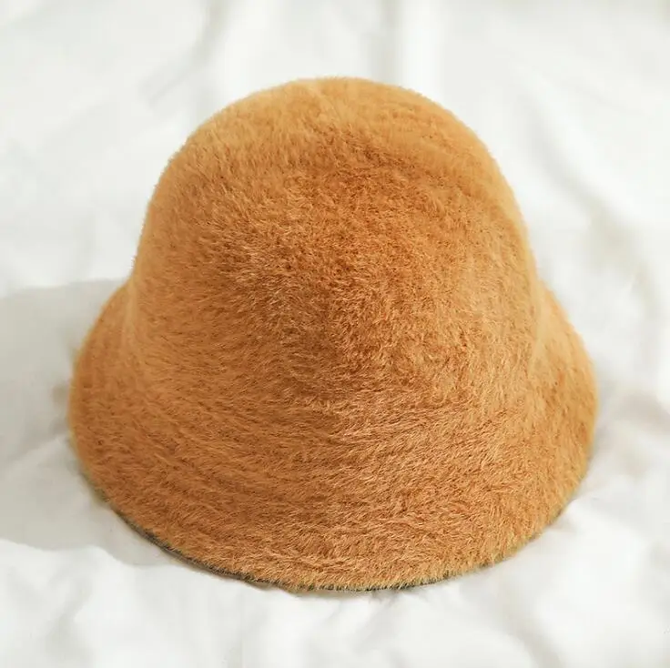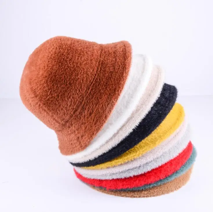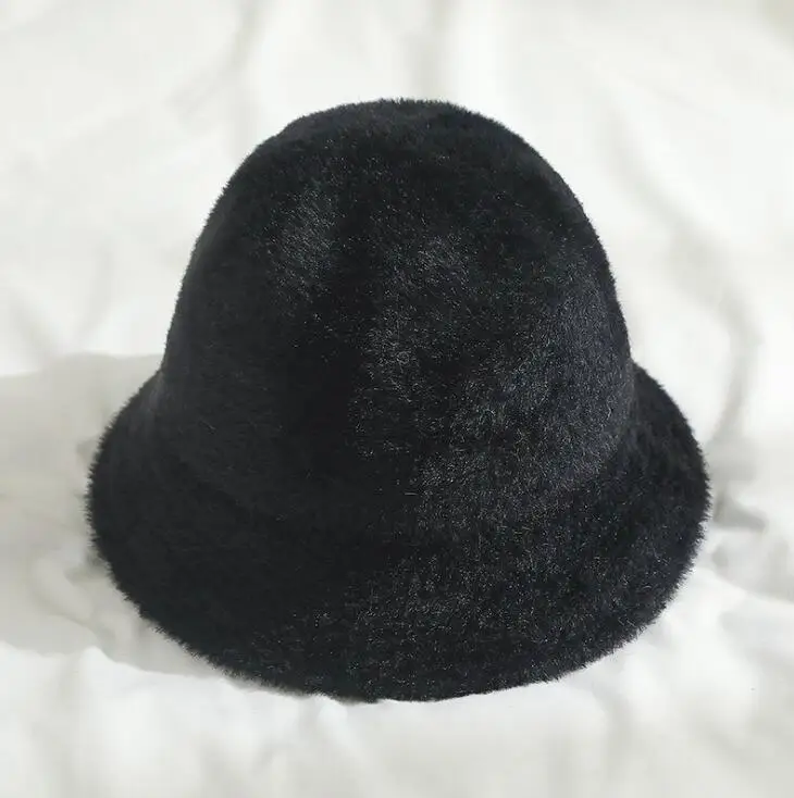 Fashion Winter Hat for Women Fur Bucket Warm Caps Dome Panama Black White Vintage Fisherman bucket Hats шапка женская