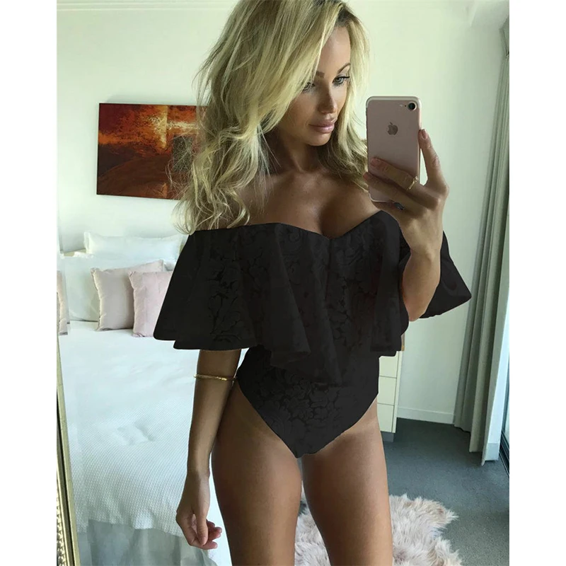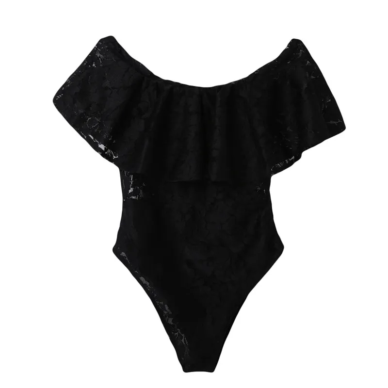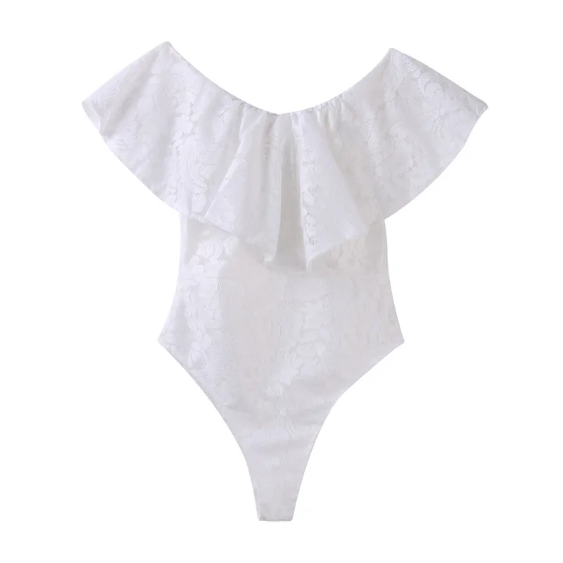 Fashion Women Lady Lace Bodysuit Elegant Off Shoulder Ruffles Leotard Summer Sleeveless Evening Party Club Romper Streetwear
