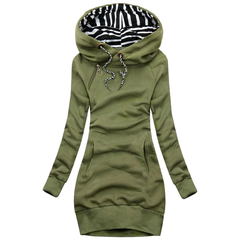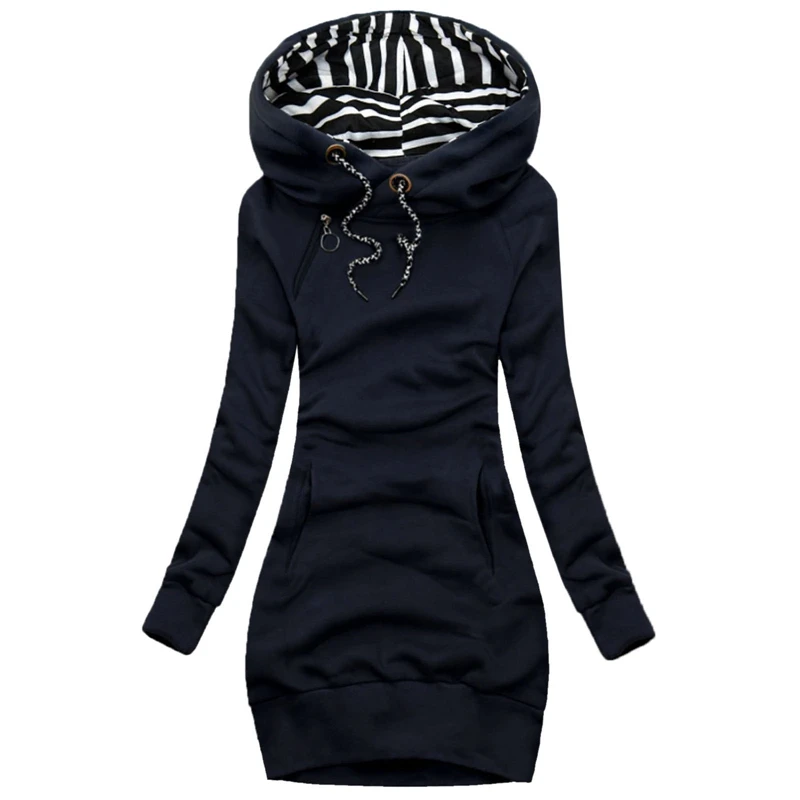 Fashion Women Sweatshirt Pullover Hoodies Long Sleeve Dress Hooded Striped Hooded Tops Drawstring Sweatshirts Slim Long Hoodies
