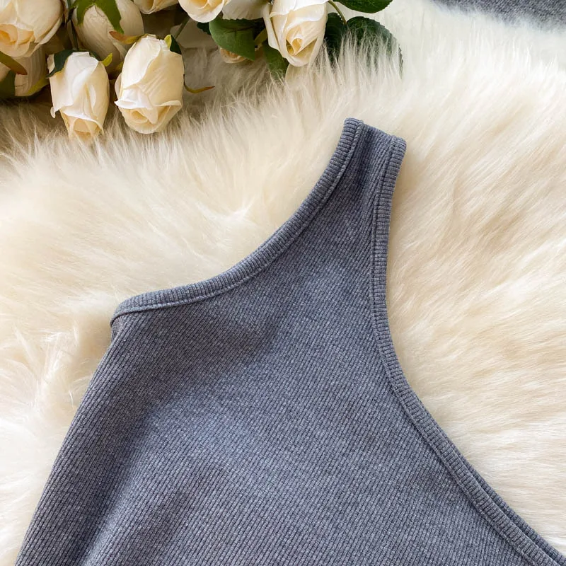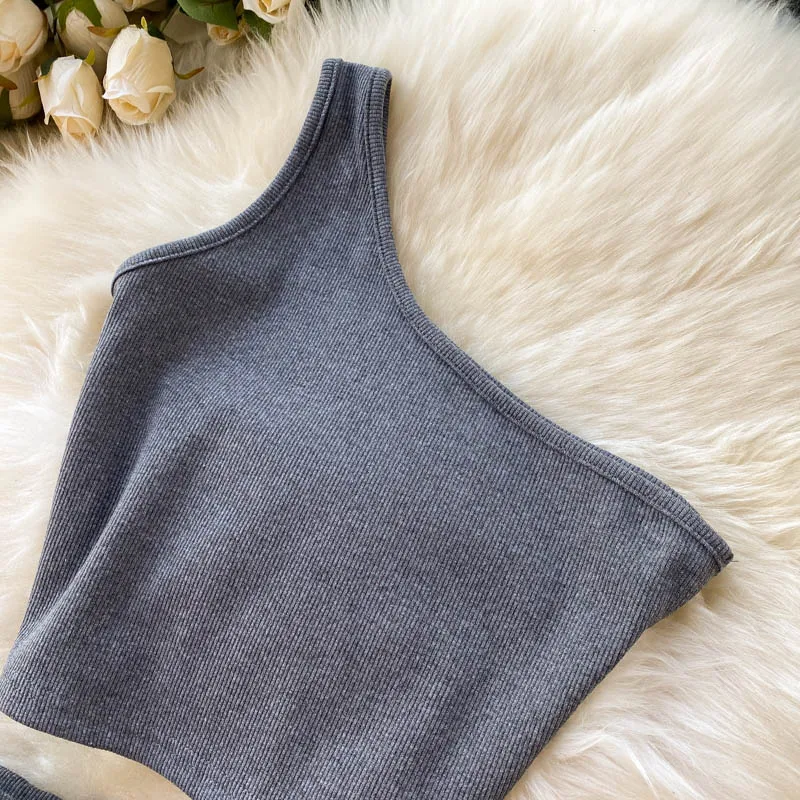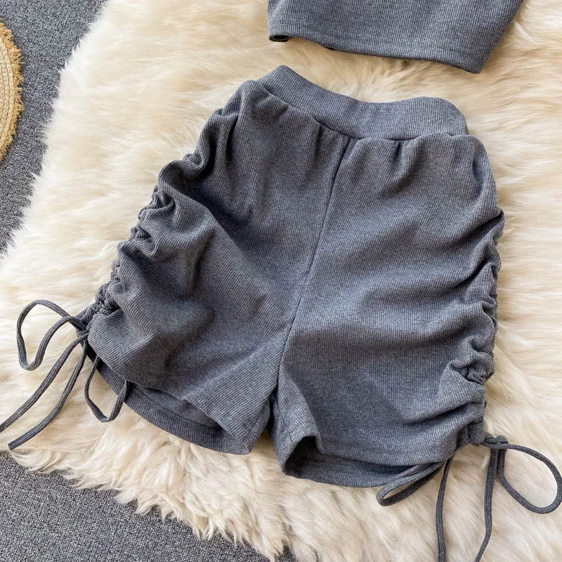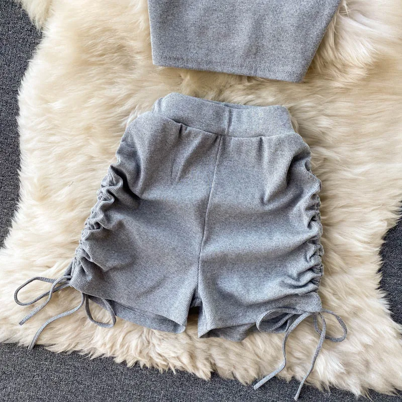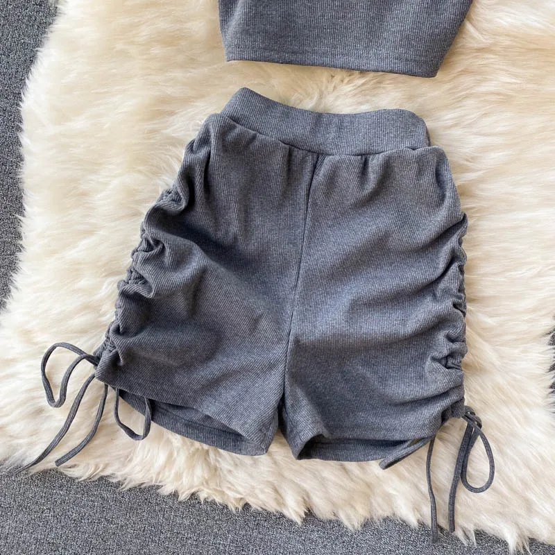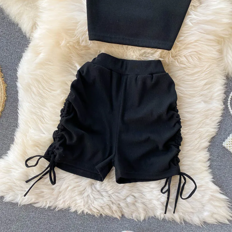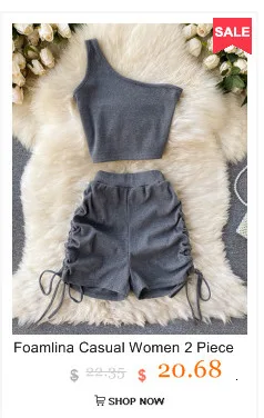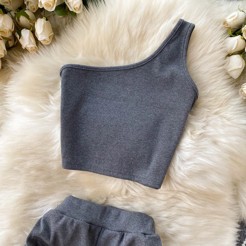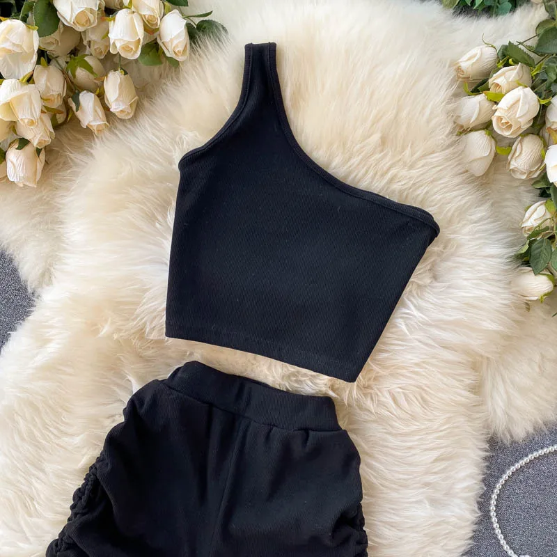 Foamlina Casual Women 2 Piece Set Solid Summer Fashion One Shoulder Sleeveless Crop Top and Drawstring Shorts Workout Tracksuits