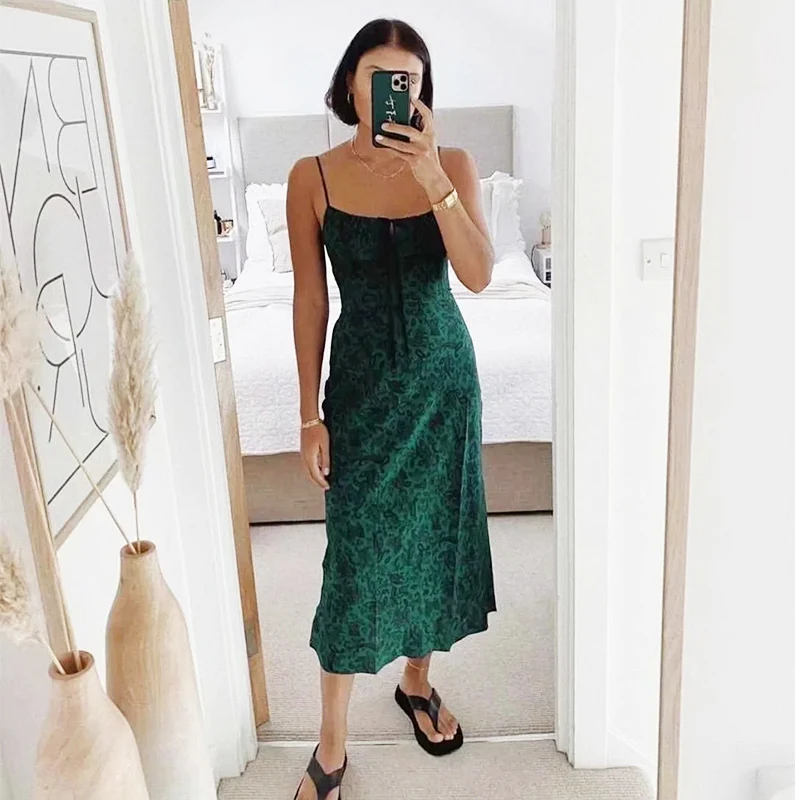 Foridol Strap Sleeveless Print Boho Summer Dress Long Women Green Floral Yellow Dresses Sundress Vintage French Style Dress