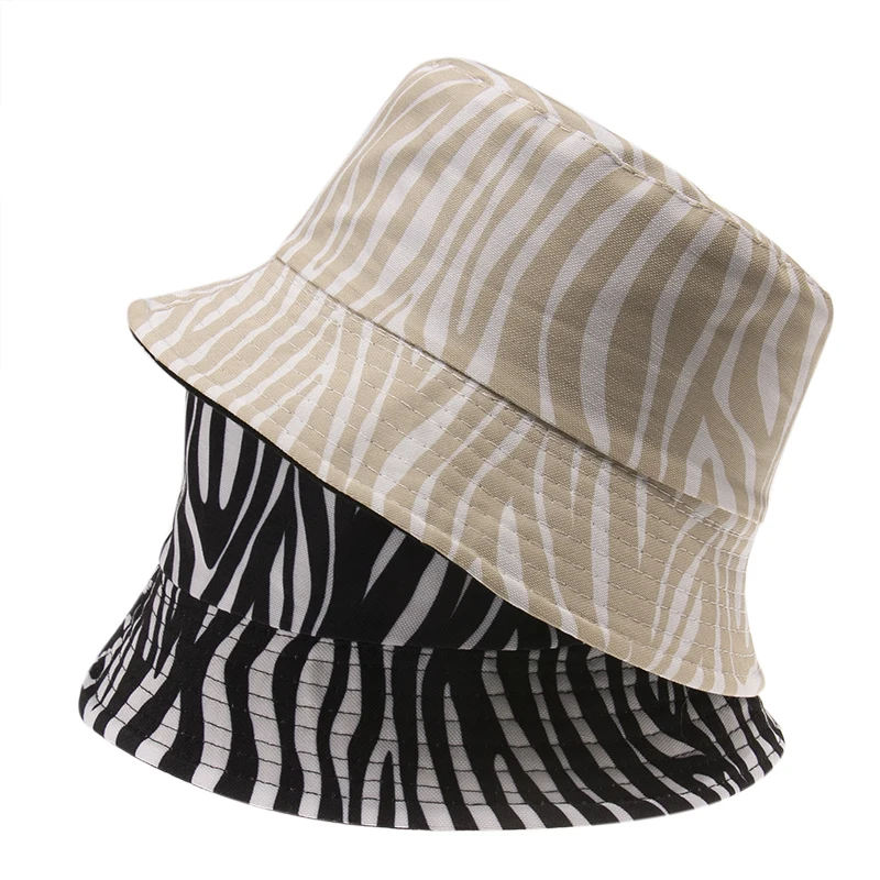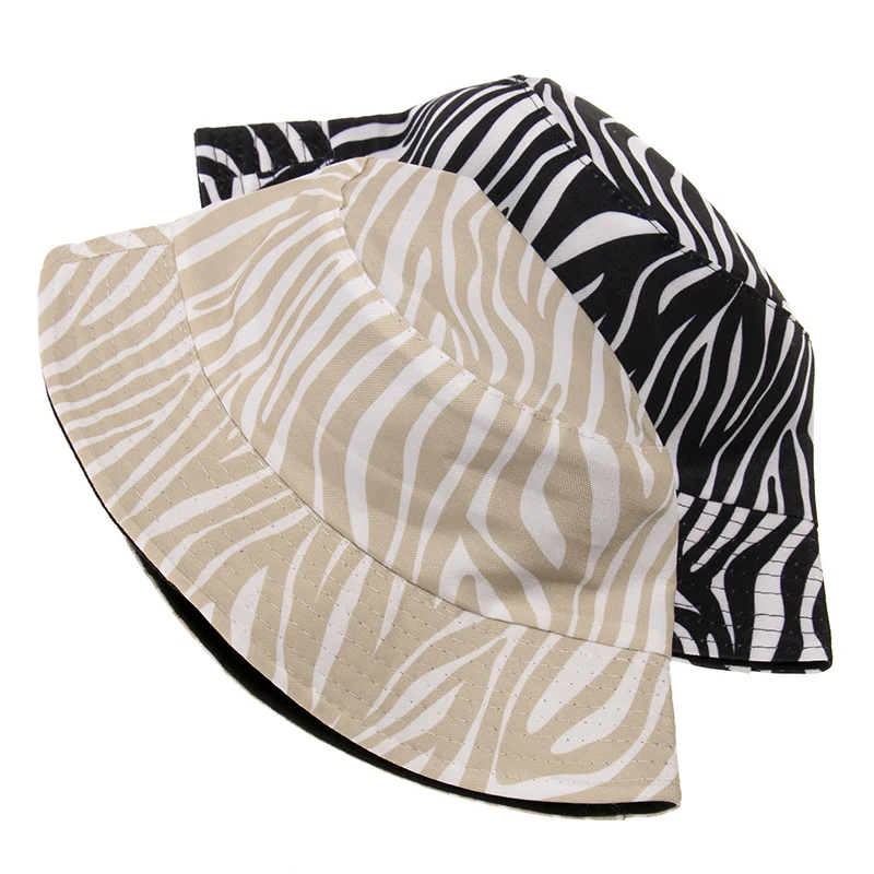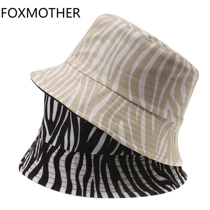 FOXMOTHER New Fashion Black Beige Striped Zebra Print Bucket Hats For Womens Ladies Gifts