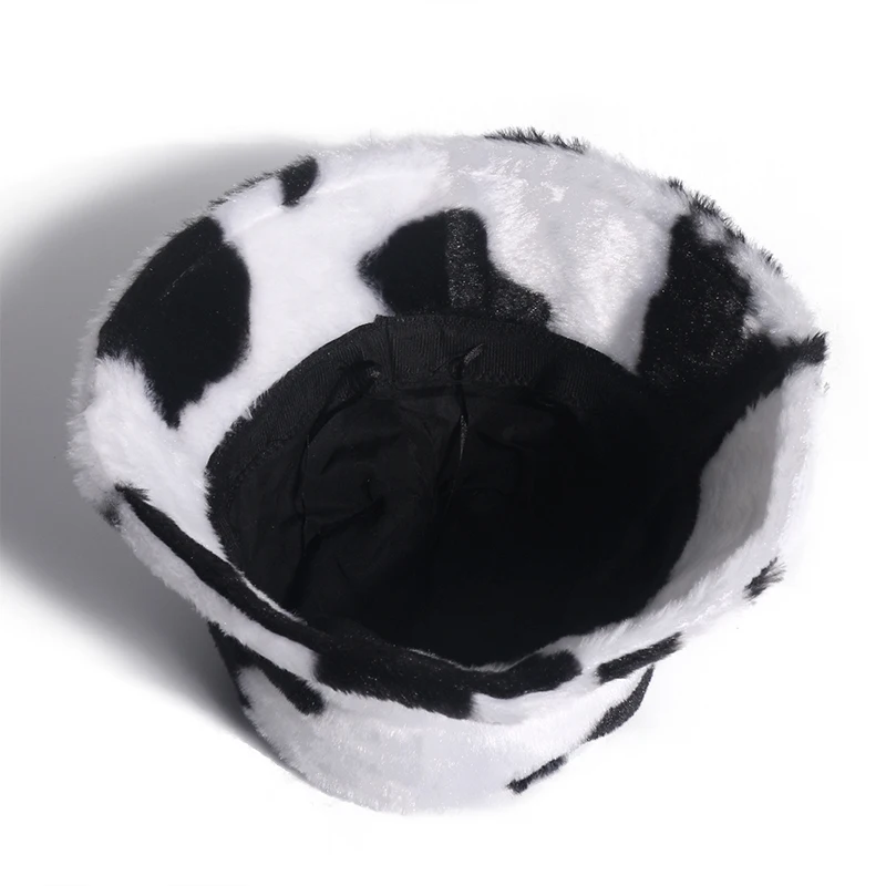 FOXMOTHER New Fashion Faux Fur Cow Print Bucket Hats Women Winter Panama Fisherman Caps Gorra