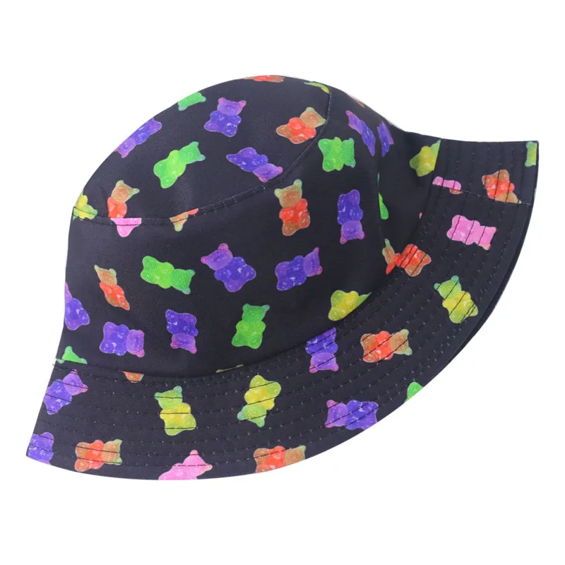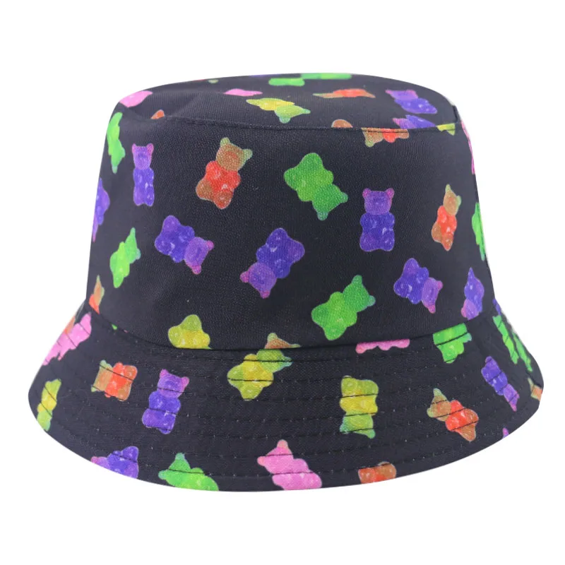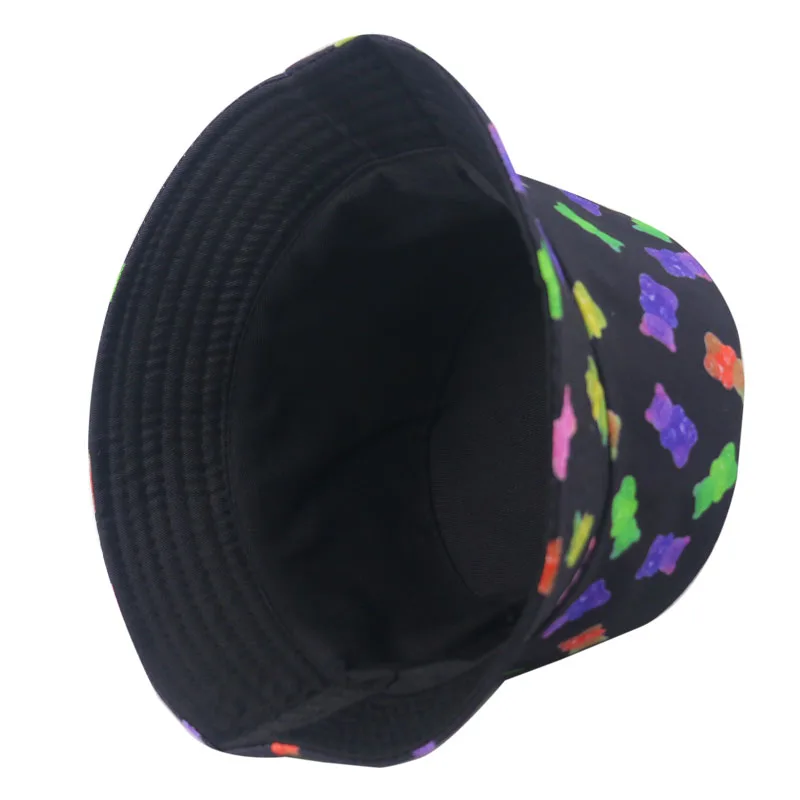 FOXMOTHER New Men Reversible Cartoon Bear Print Bucket Hats Women Fisherman Hats Cap Summer