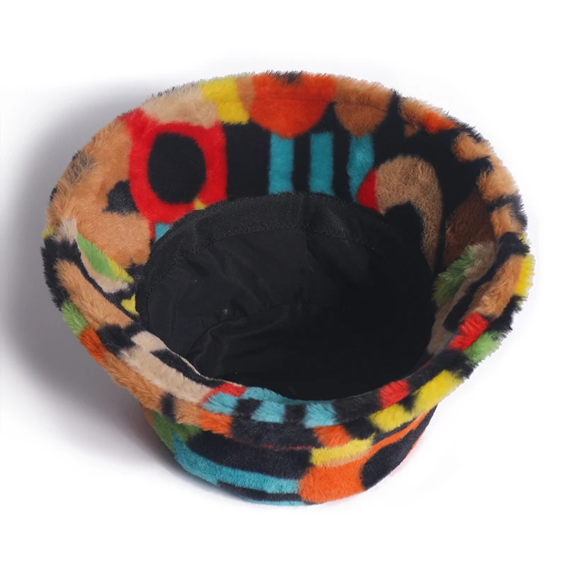 FOXMOTHER New Outdoor Multicolor Rainbow Faux Fur Letter Pattern Bucket Hats Women Winter Soft Warm Gorros Mujer