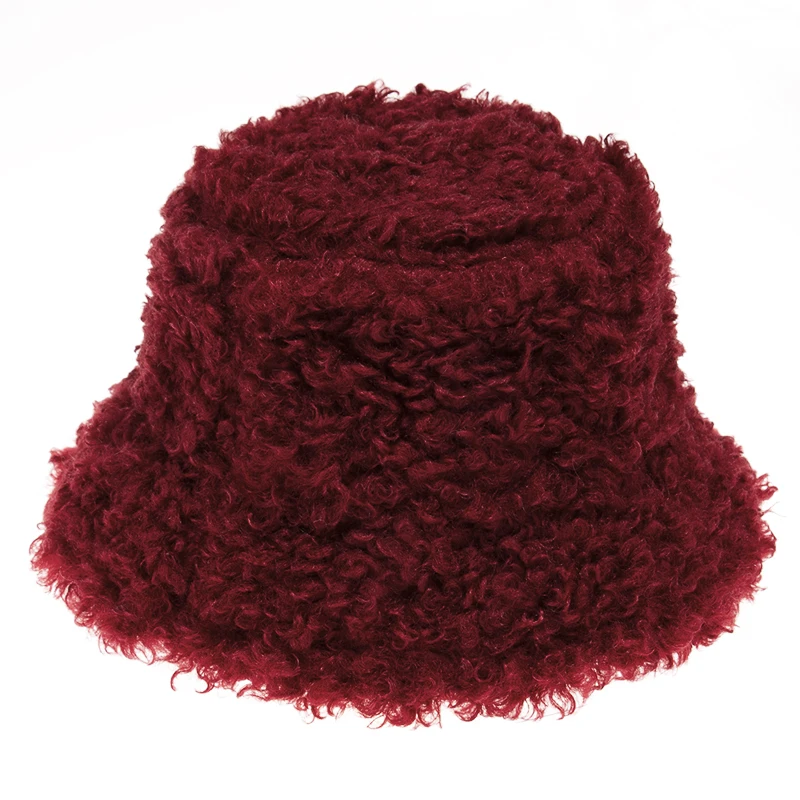 FOXMOTHER New Outdoor Warm Lamb Faux Fur Bucket Hat Black Solid Fluffy Fishing Cap Panama Bob Fisherman Gorros Women Winter 2021