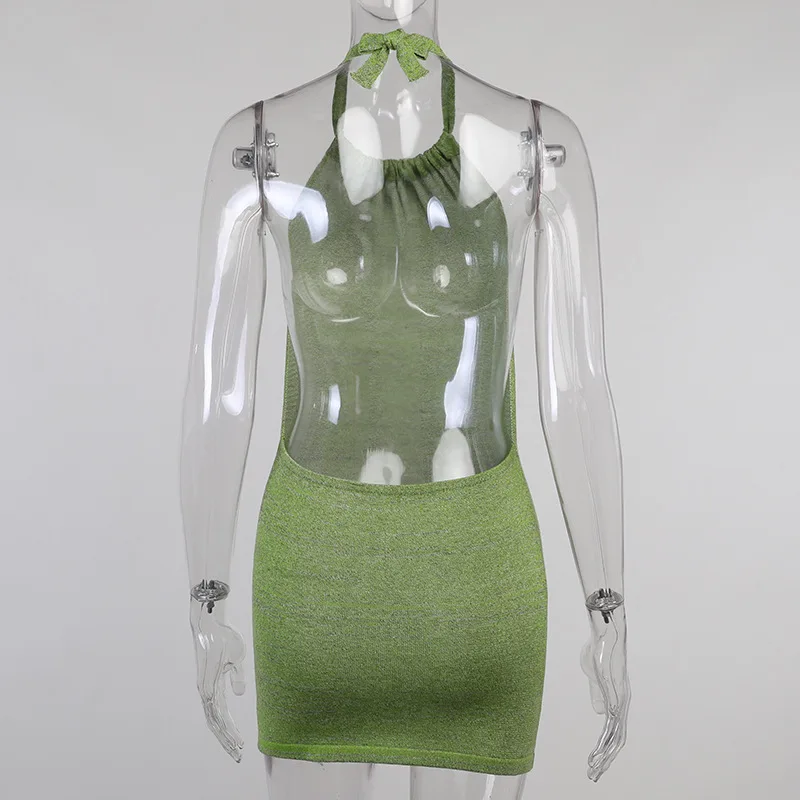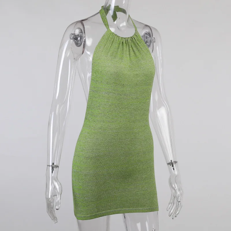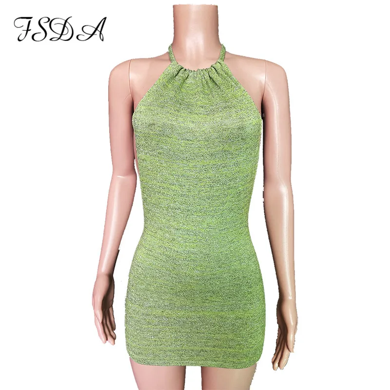 FSDA 2021 Green Backless Mini Dress Beach Women Halter Neck Sleeveless Summer Black Off Shoulder Party Knit Bodycon Dresses Sexy