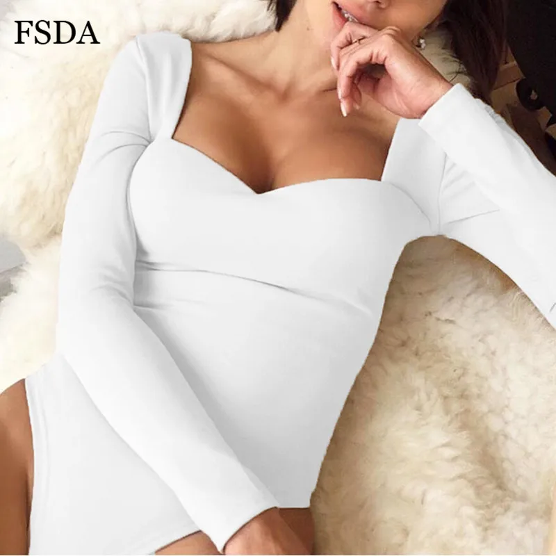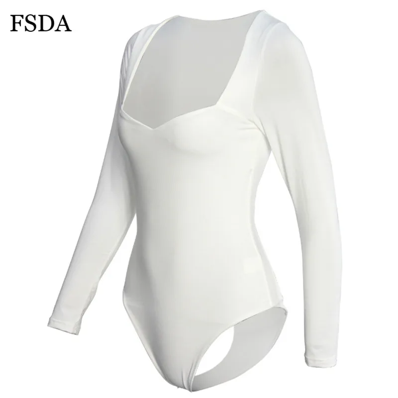 FSDA Vintage Square Collar White Bodysuit Black Women Sexy Autumn Winter Casual Body Top Long Sleeve Solid Skinny Bodysuits