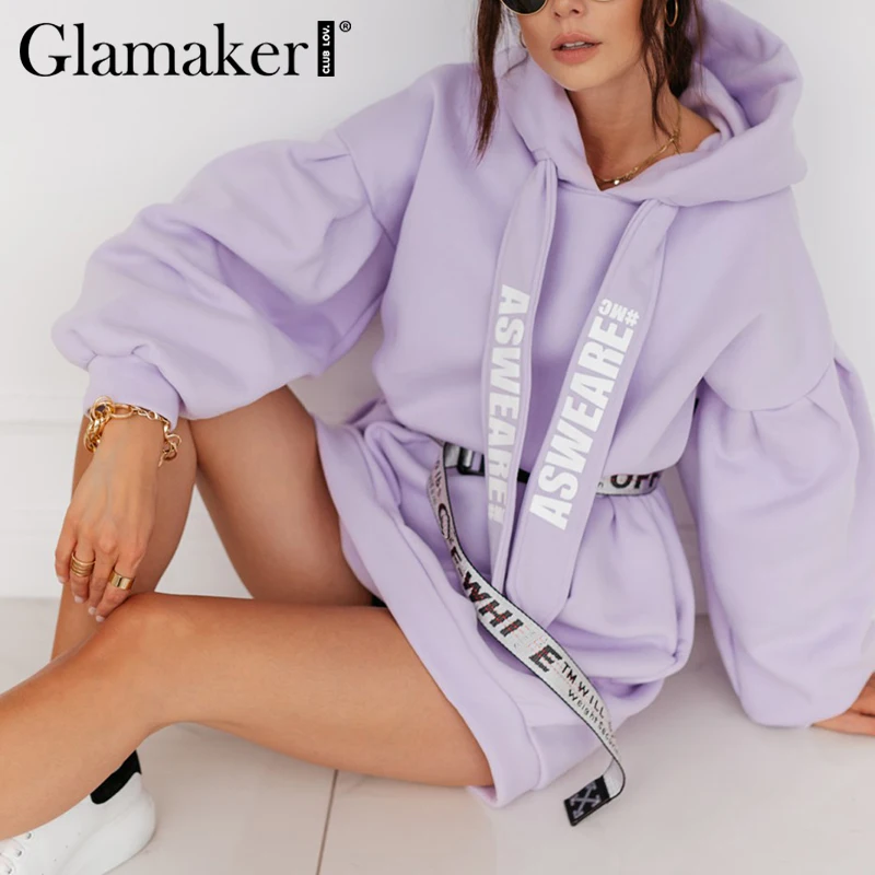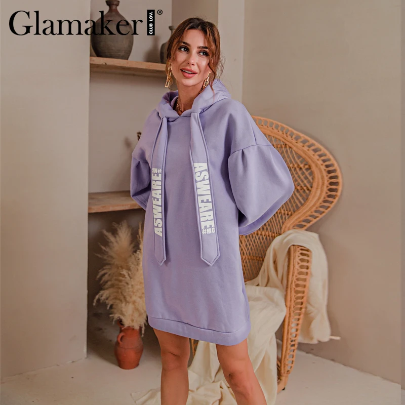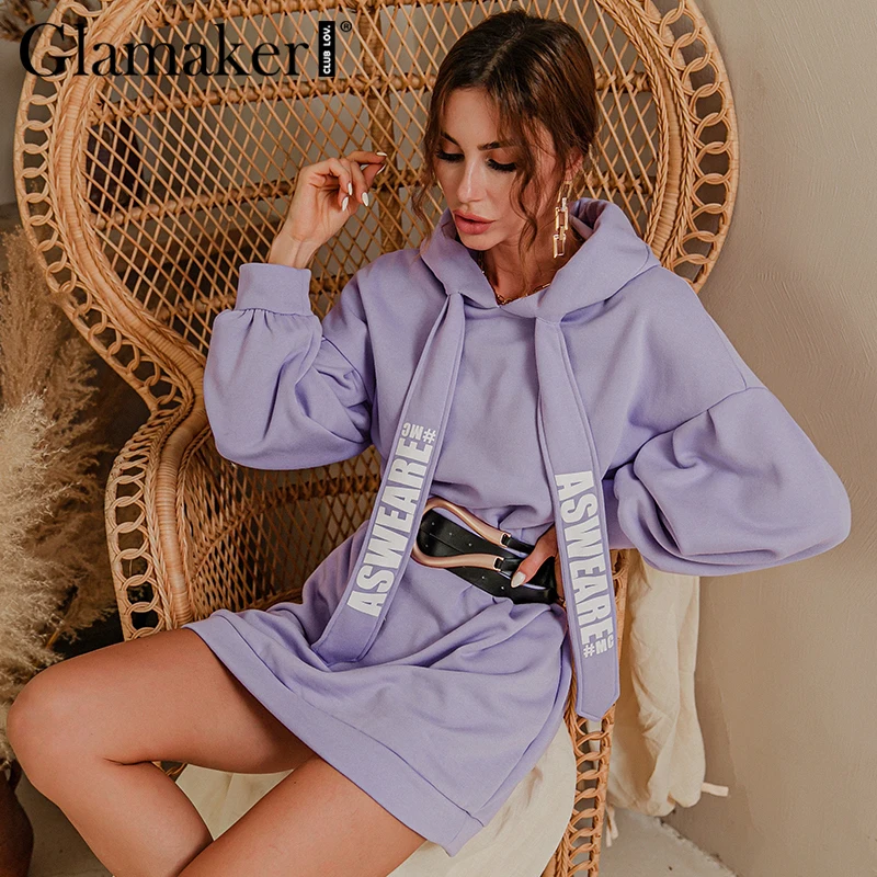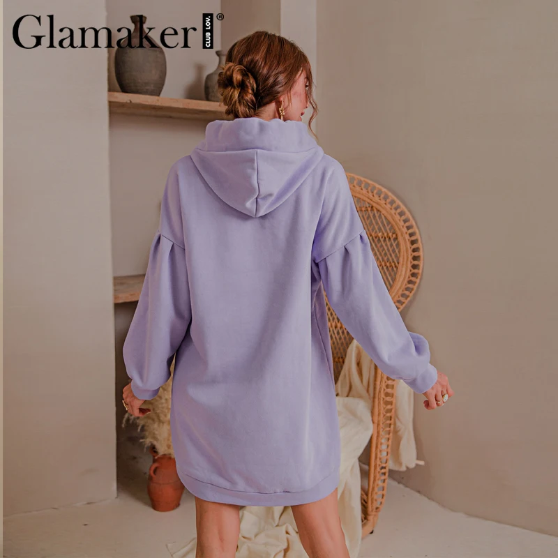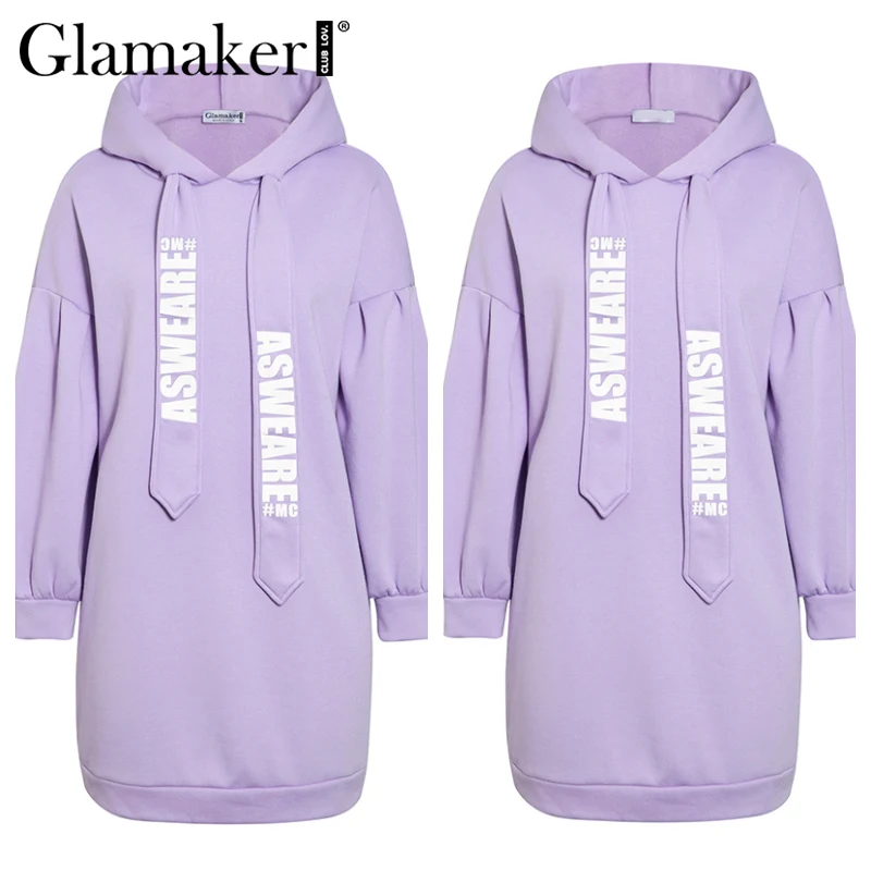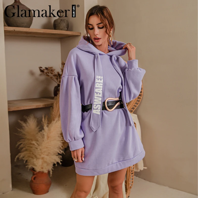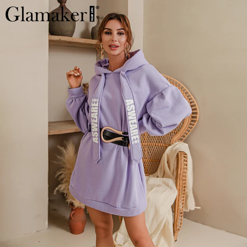 Glamaker Purple loose sweatshirt hoodies fashion women casual autumn long sleeve sweatshirt dress female oversize sweatshirt
