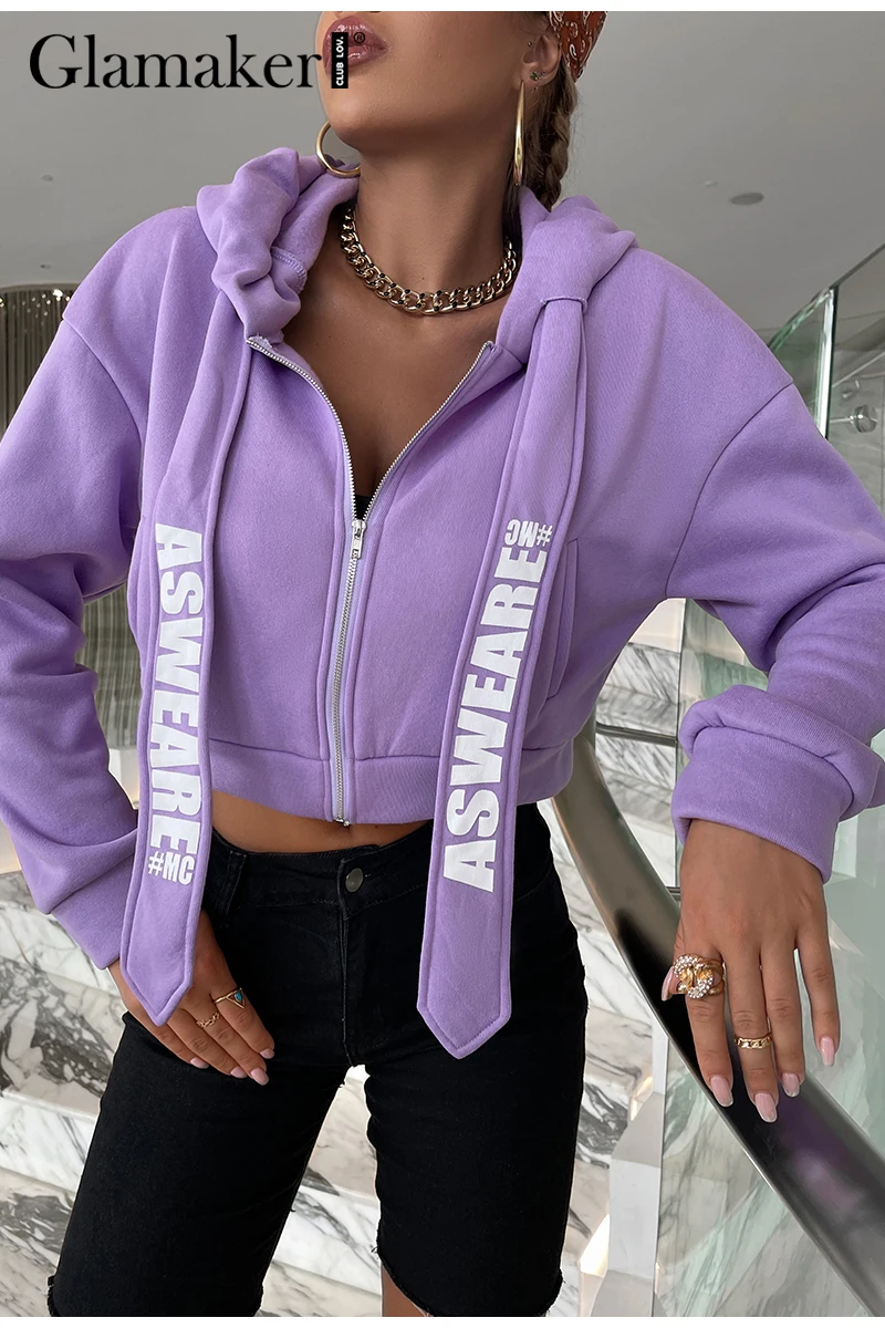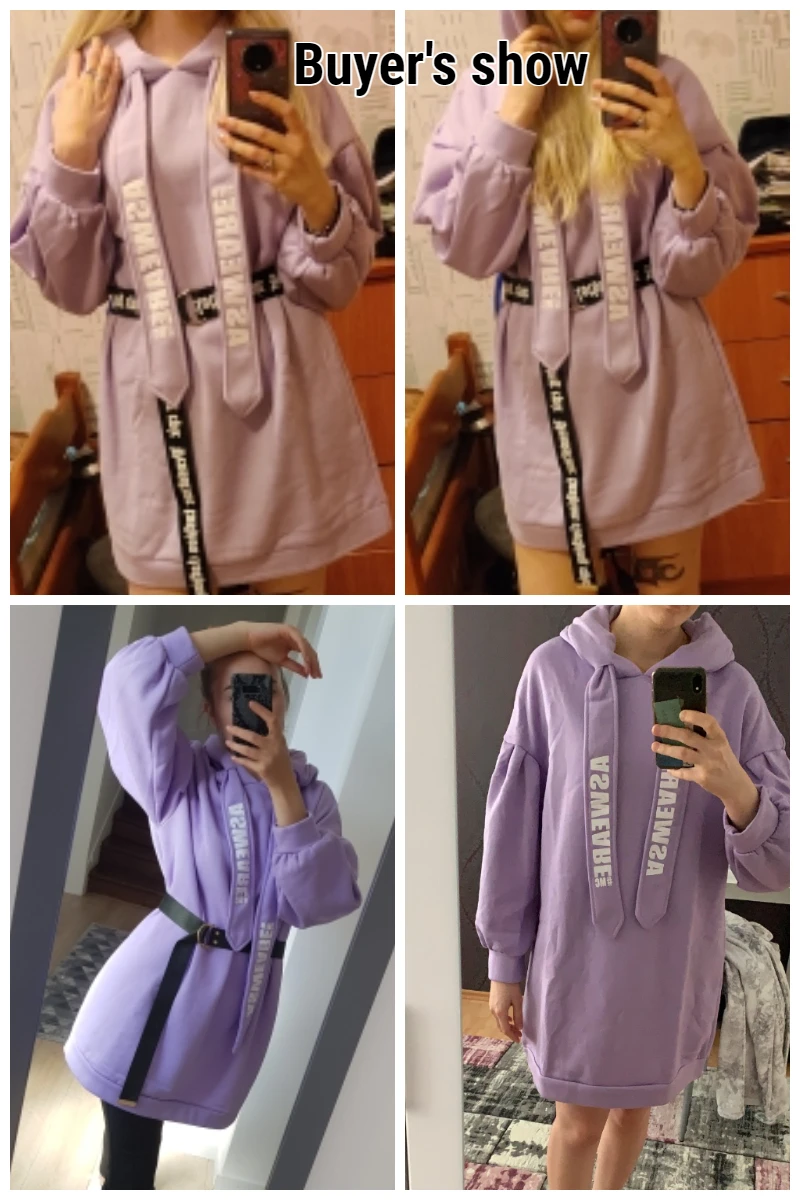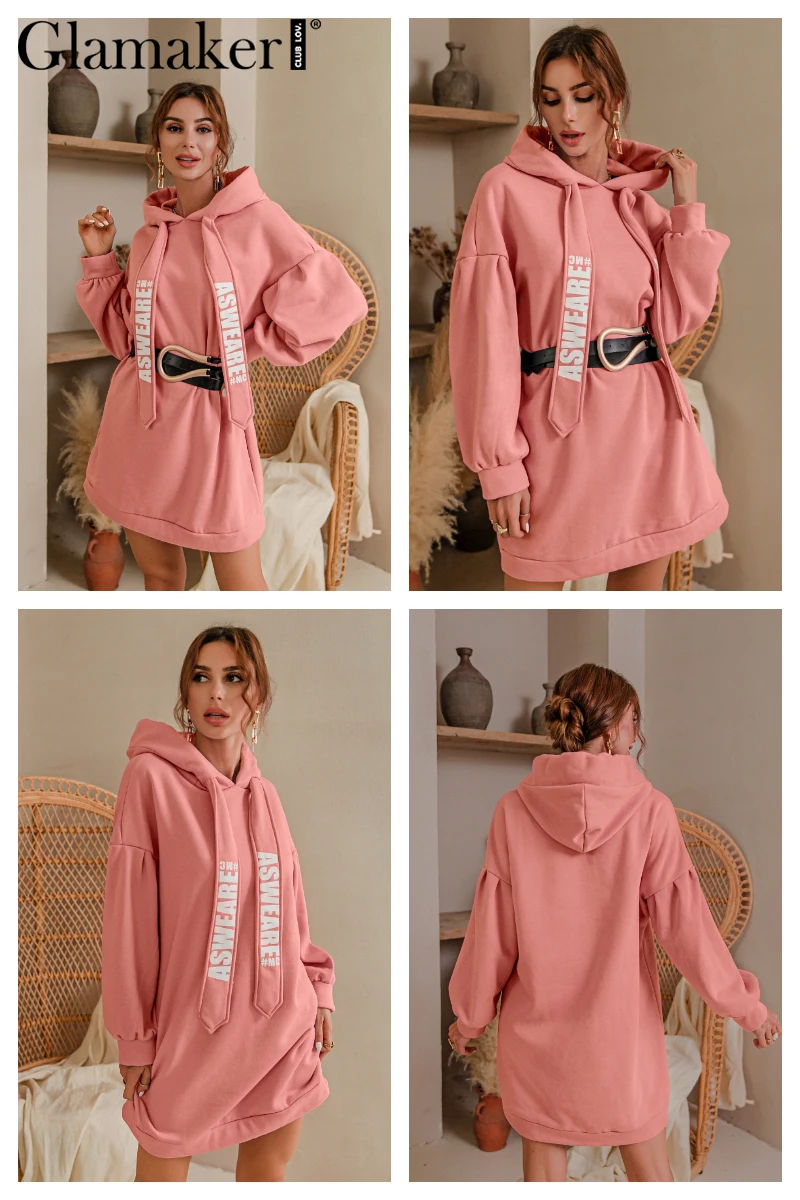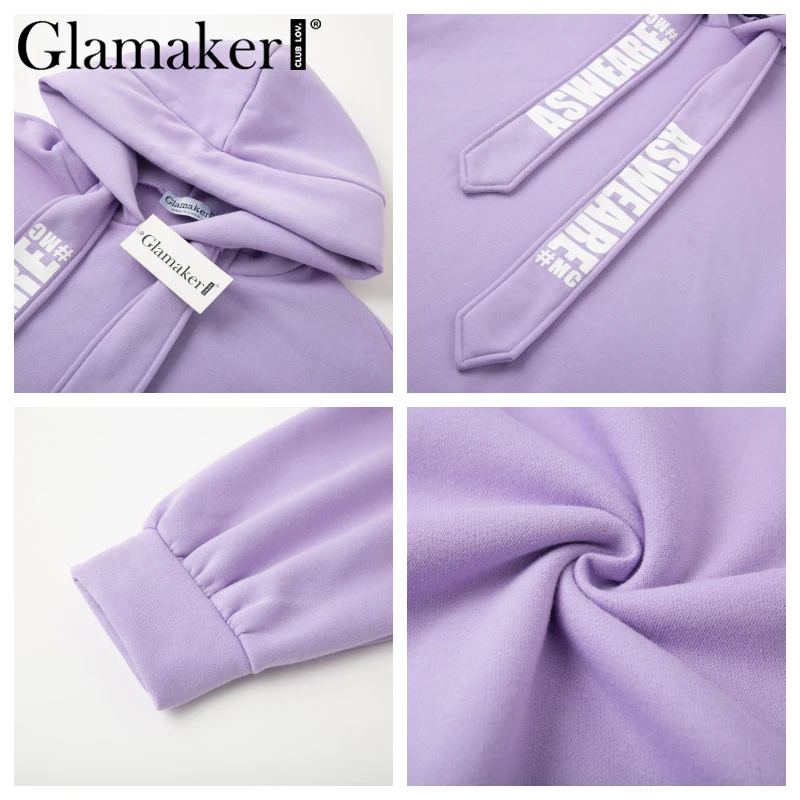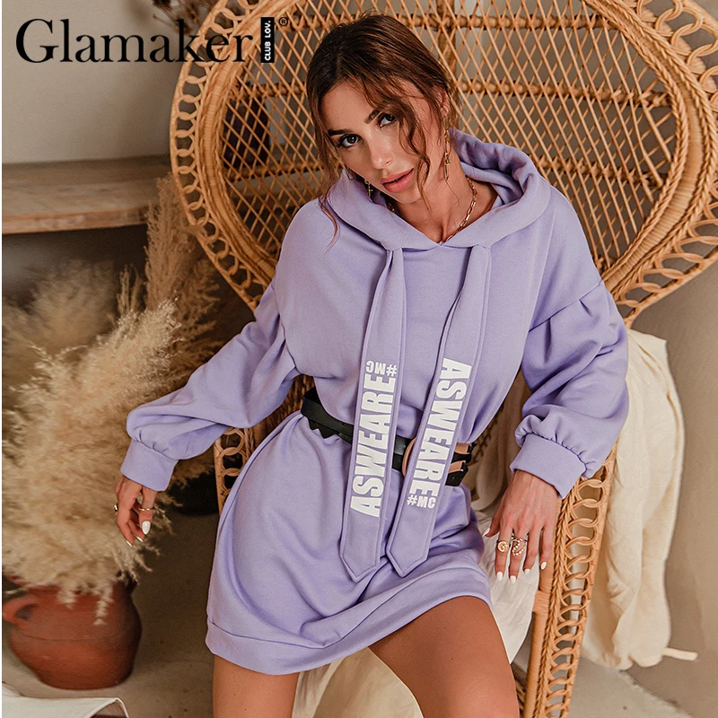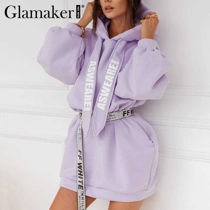 Glamaker Purple loose sweatshirt hoodies fashion women casual autumn long sleeve sweatshirt dress female oversize sweatshirt