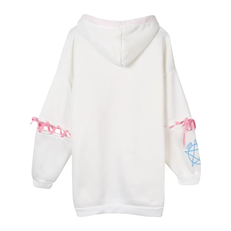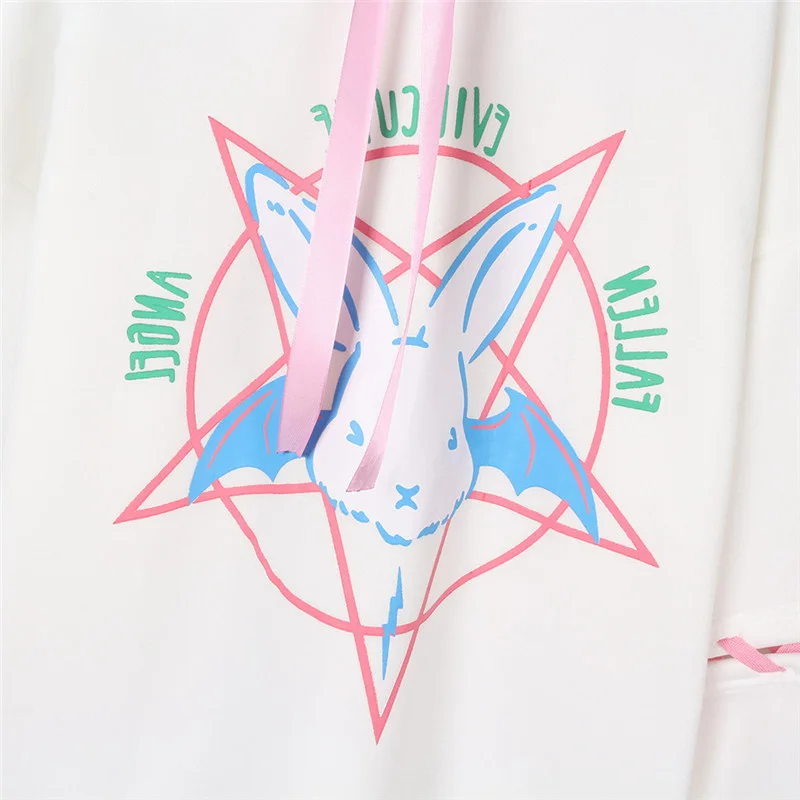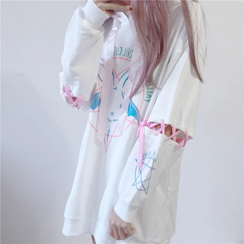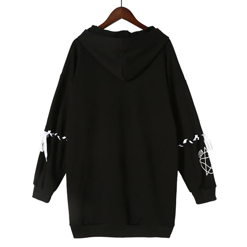 Harajuku Hoodies Autumn Women 2020 New Print Lace Up Gothic Punk Oversize Tops Long Sleeve Hooded Sweatshirt Pullover Streetwear