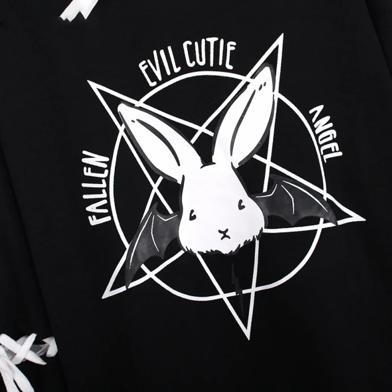 Harajuku Hoodies Autumn Women 2021 New Print Lace Up Gothic Punk Oversize Tops Long Sleeve Hooded Sweatshirt Pullover Streetwear