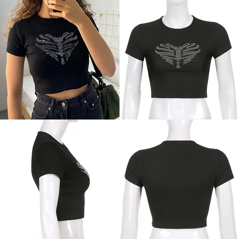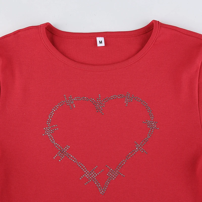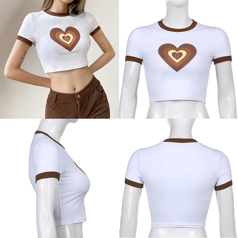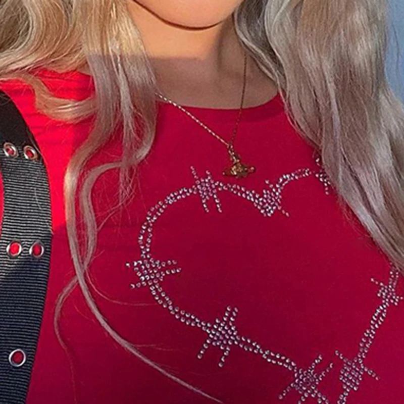 Heart Diamond Printed Y2K Crop Tops Women Vintage Retro Aesthetic 90s Tees Casual Crewneck Short Sleeves Tshirts Cuteandpsycho