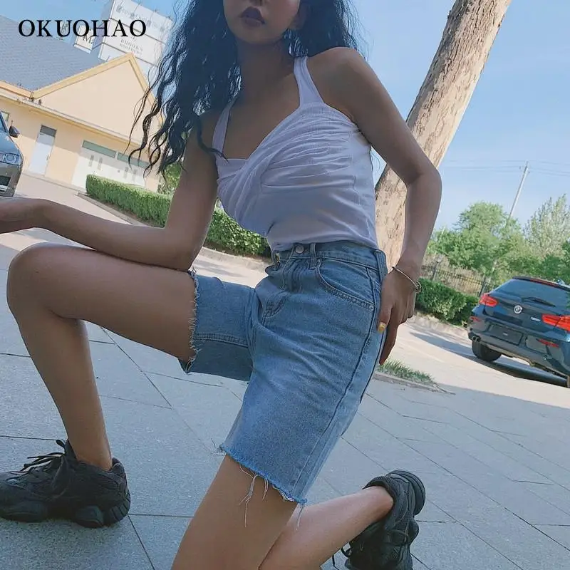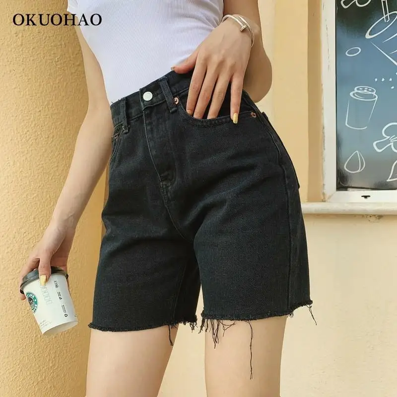 High Waist Slim Denim Shorts Bermuda Plus Size Woman New Fashion Tassel Tight Five-point Denim Shorts Washed Sexy Female summer