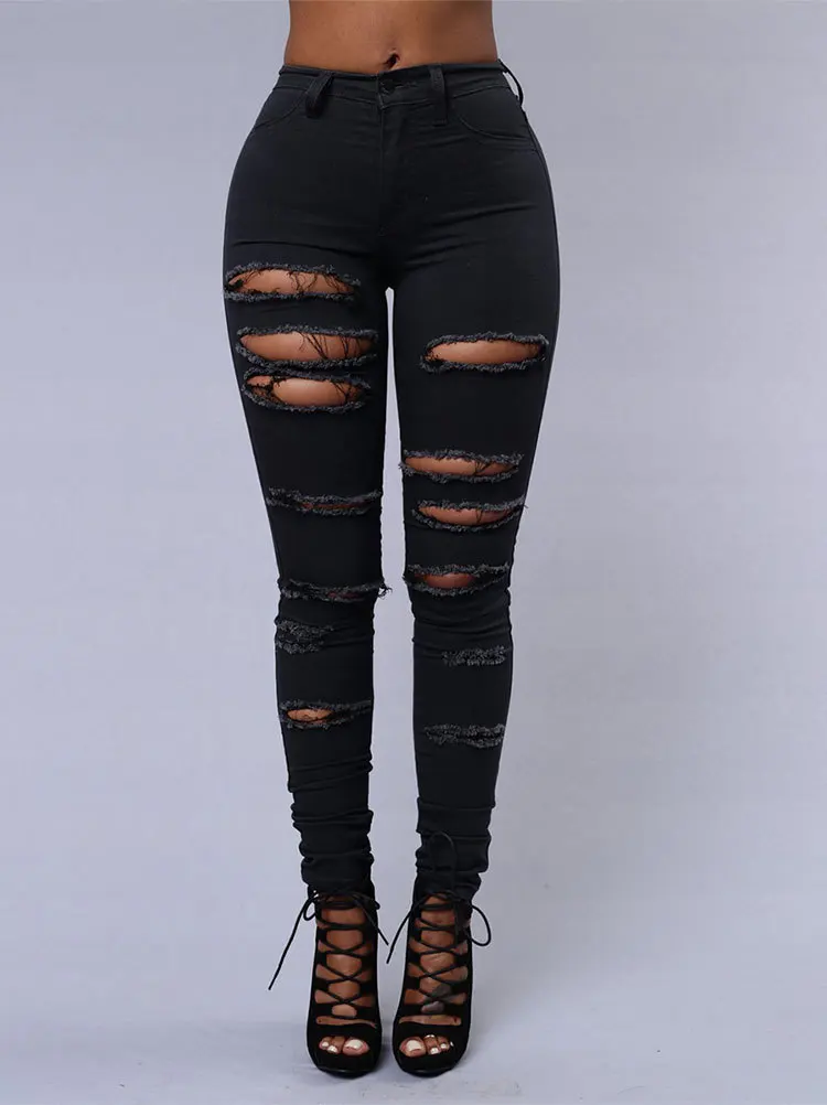 Hot sale ripped jeans for women sexy skinny denim jeans fashion street casual pencil pants female spring and summer clothing