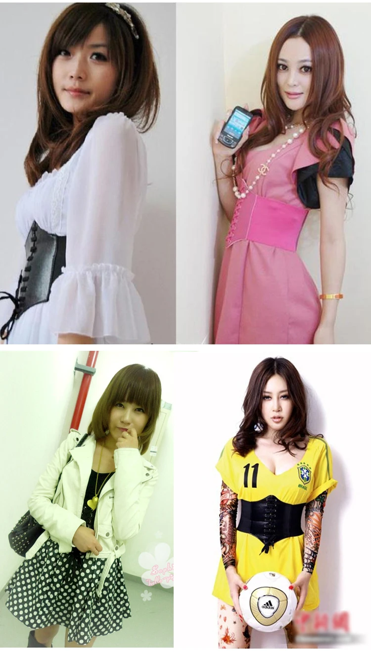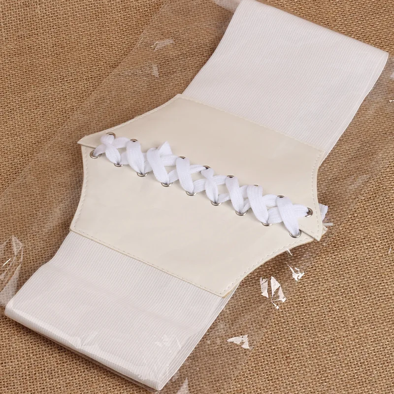 Hot Women's Ultra Plus Wide Belt Faux Leather Elastic Corset Belt Front Tie Up Waist Belt Girl Clothes Decoration