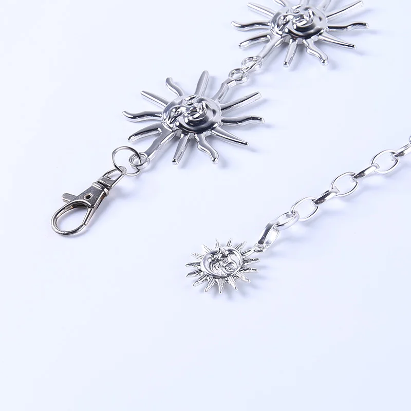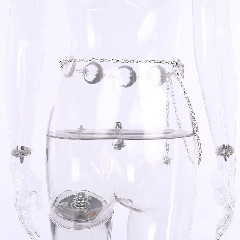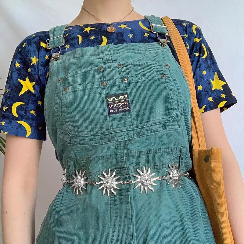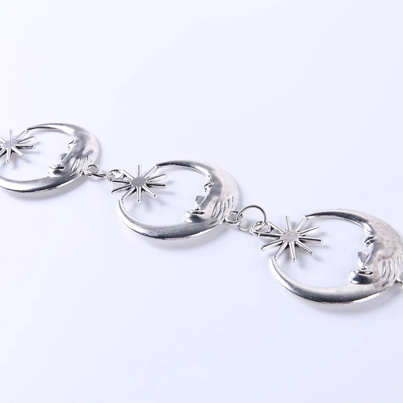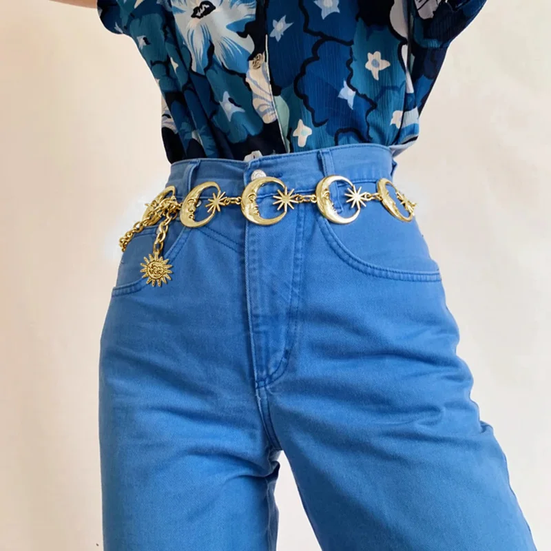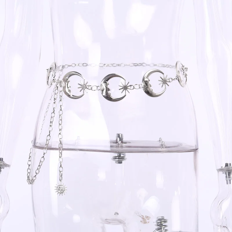 InsGoth Harajuku Punk Moon Metal Belts Women Vintage High Waist Chain Waist Belts Gothic Moon Sun Sliver Pendant Belts Female