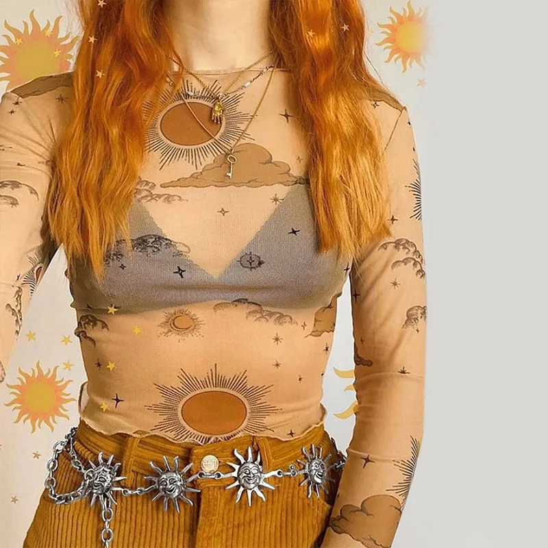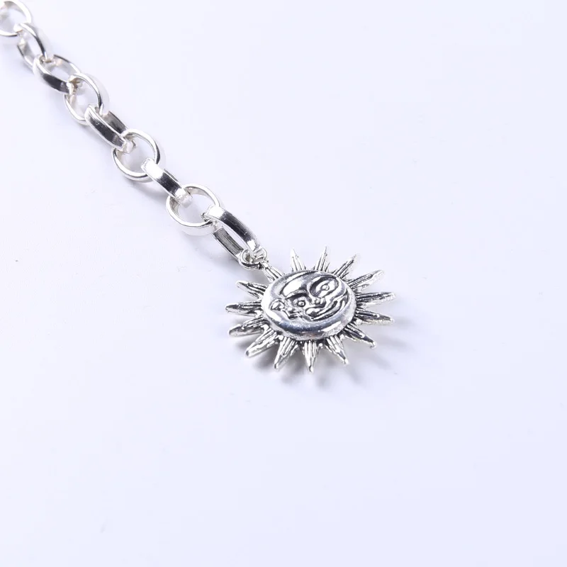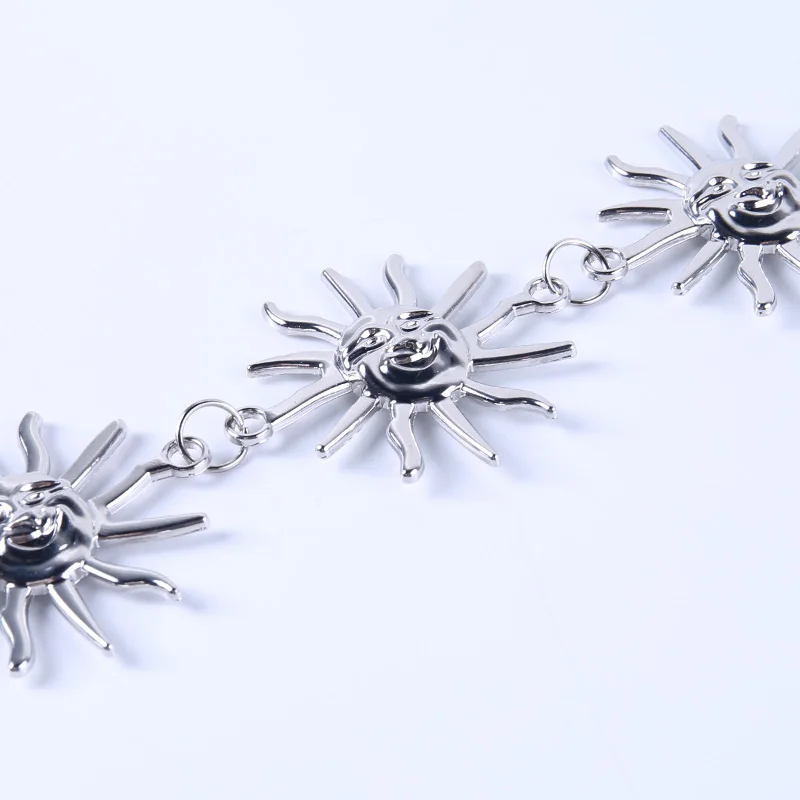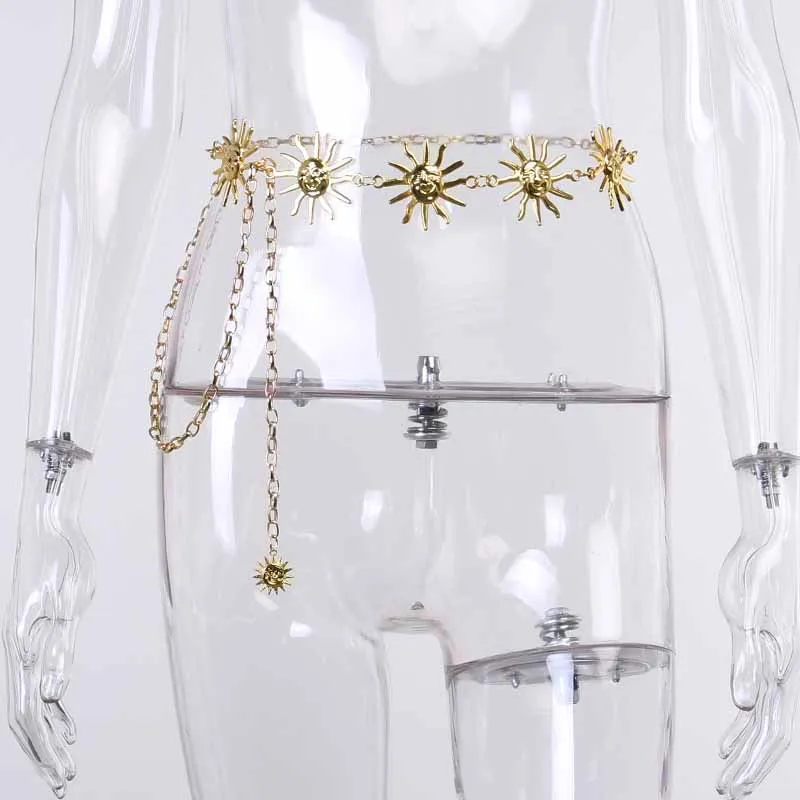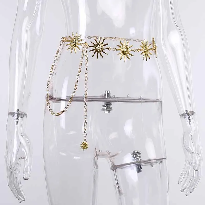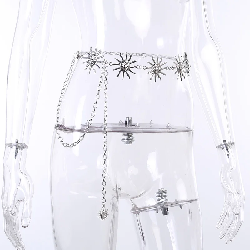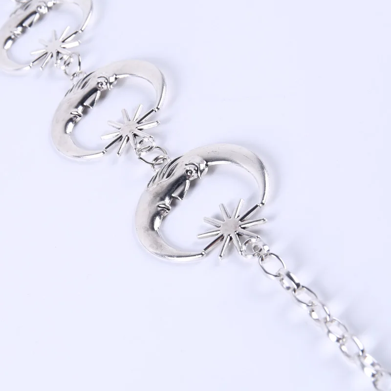 InsGoth Harajuku Punk Moon Metal Belts Women Vintage High Waist Chain Waist Belts Gothic Moon Sun Sliver Pendant Belts Female