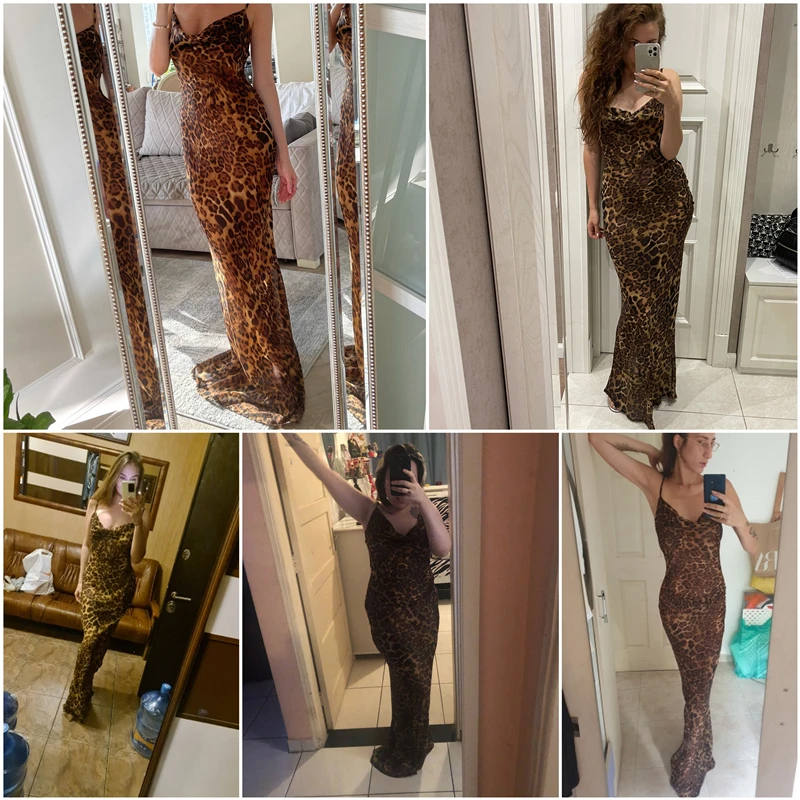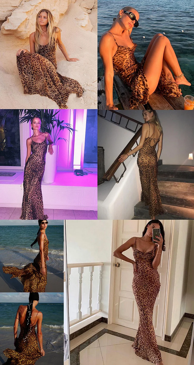Julissa Mo Leopard Print V-Neck Sexy Bodycon Long Dress Women Lace Up Backless Summer Dresses Female Straps Party Beach Vestidos