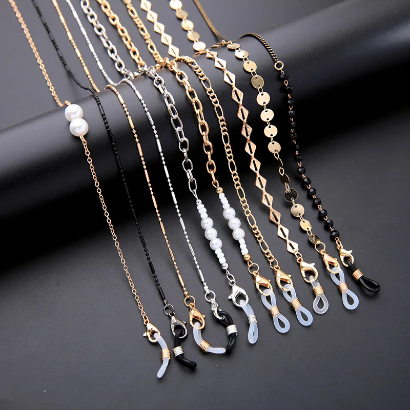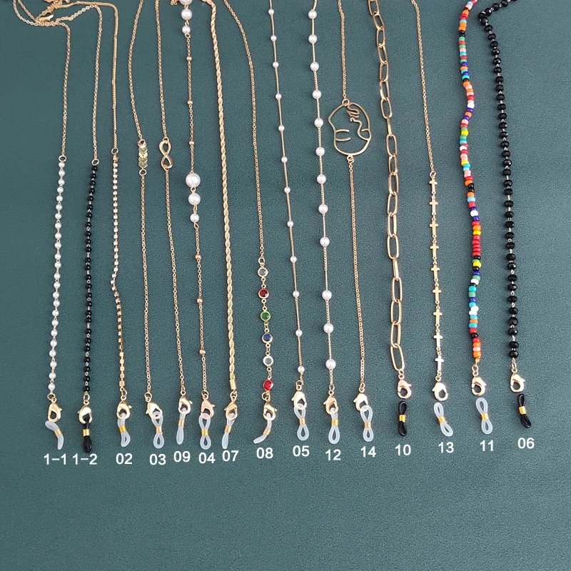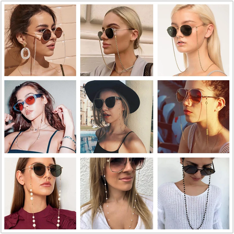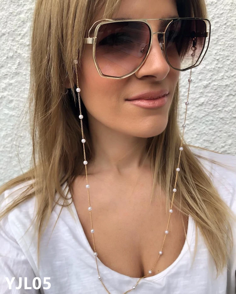Product Style:KISS ME Multi-styles Sunglass Masking Chains For Women Unique Acrylic Pearl Crystal Gold Color Alloy Chains New Fashion Jewelry