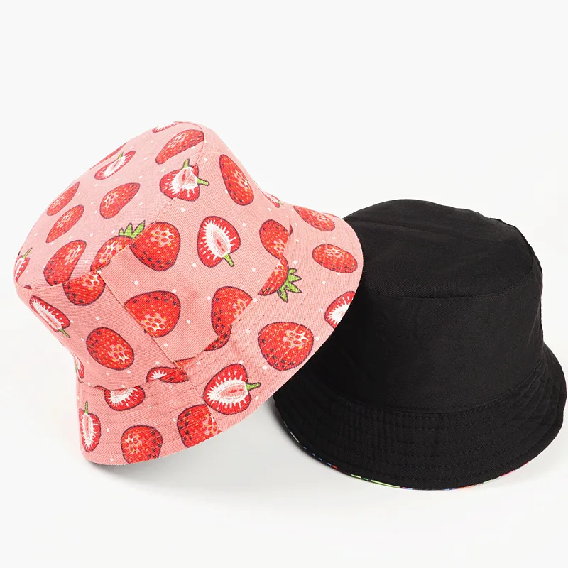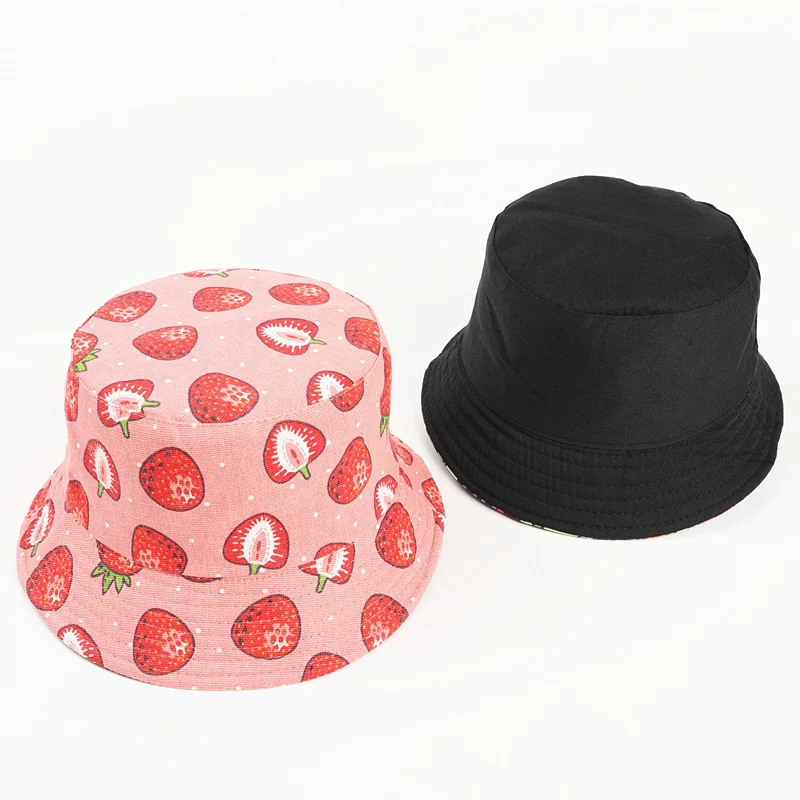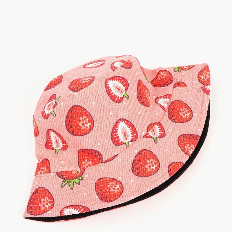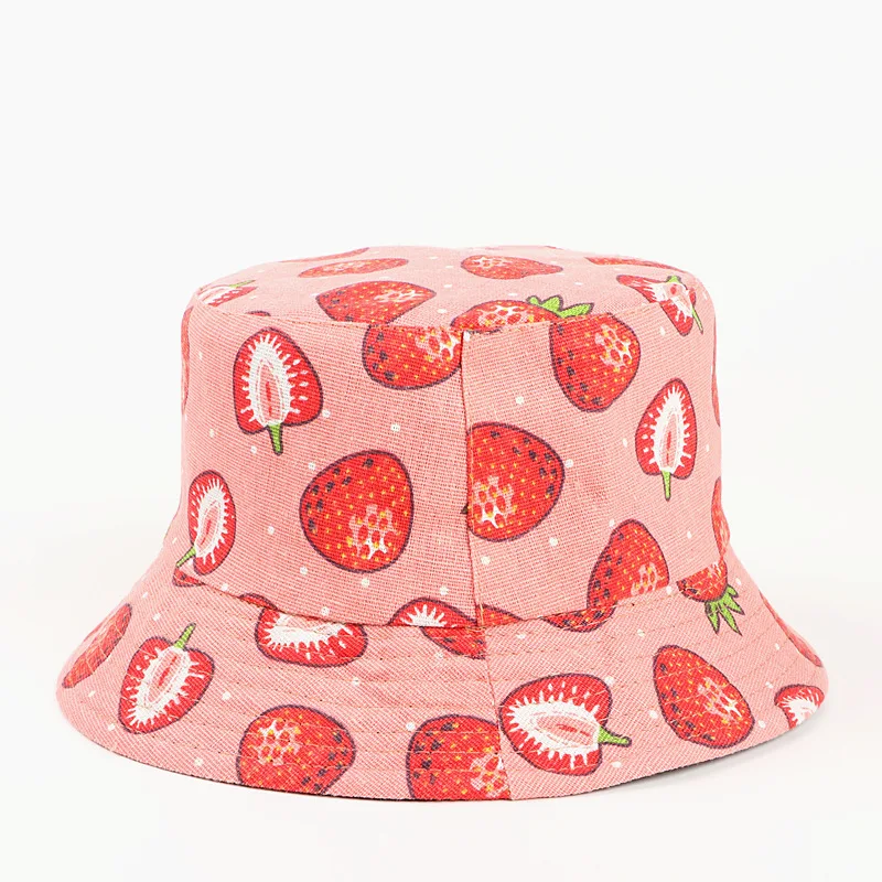 LDSLYJR Cotton Strawberry print Bucket Hat Fisherman Hat outdoor travel hat Sun Cap Hats for Women 272