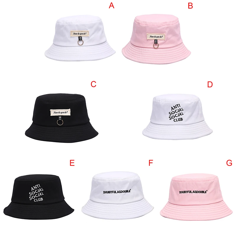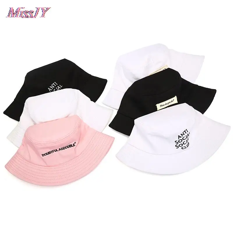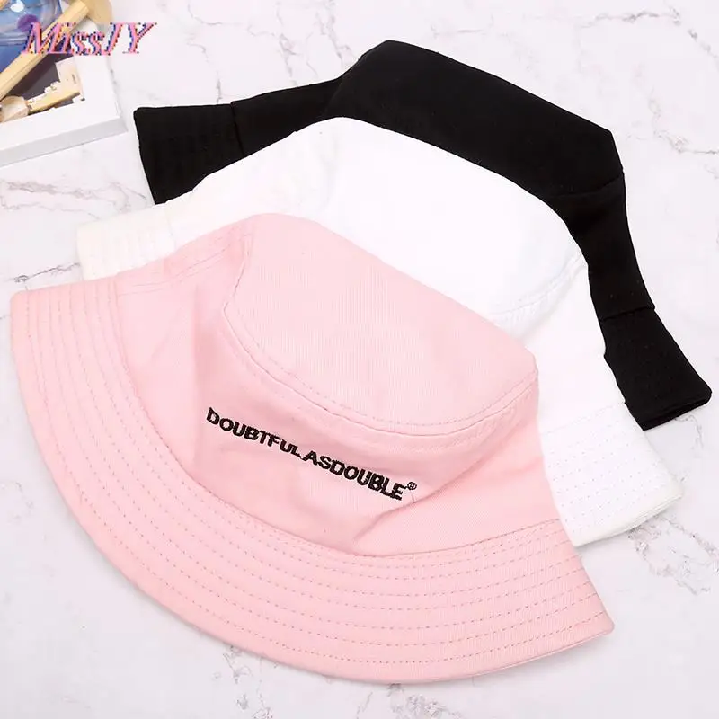 Letter Embroidery Foldable Bucket Hat Unisex Outdoor Cotton Fishing Hunting Cap