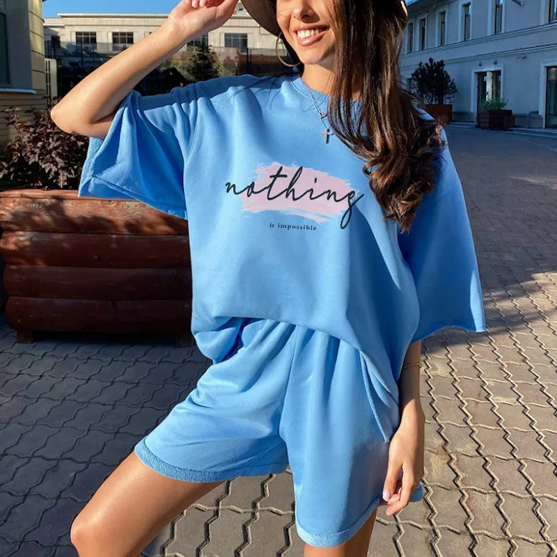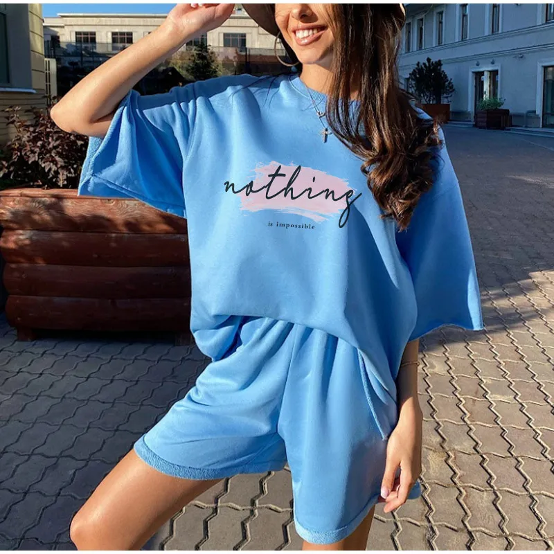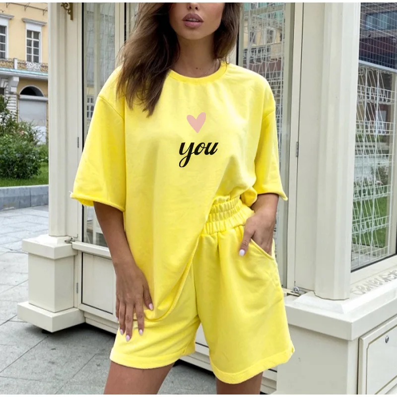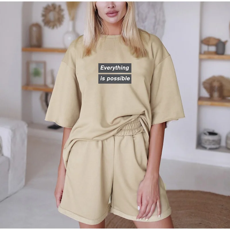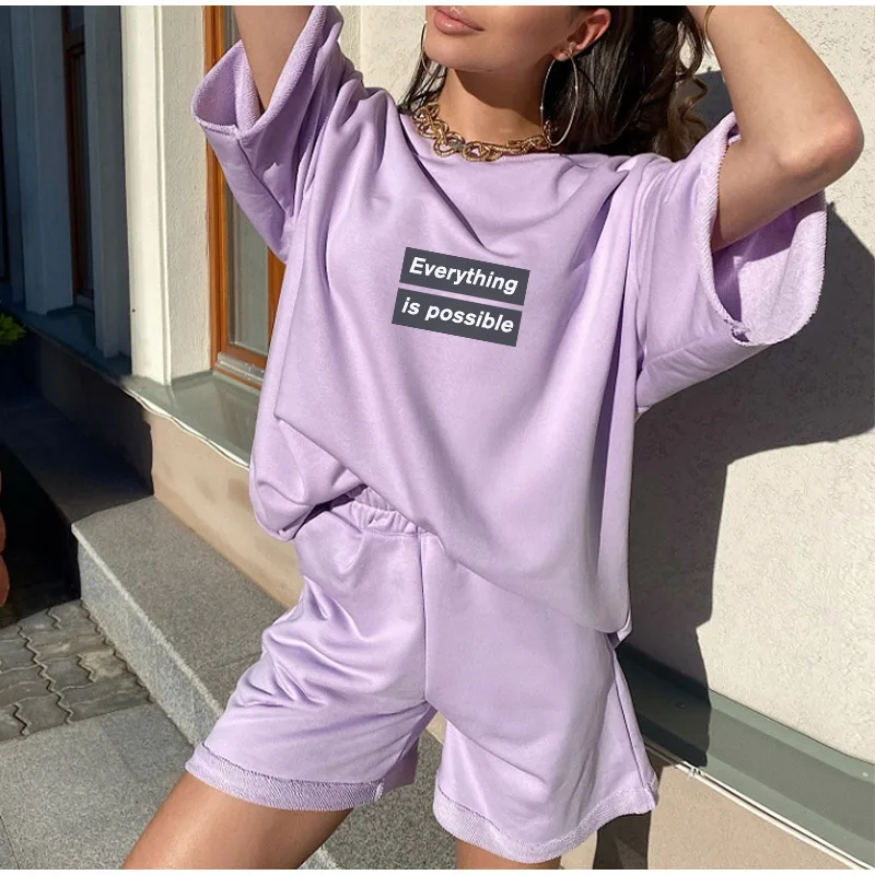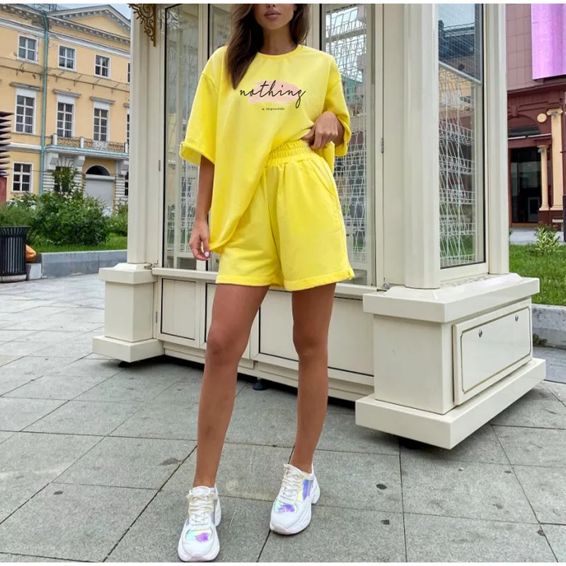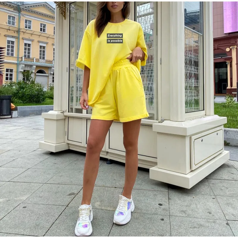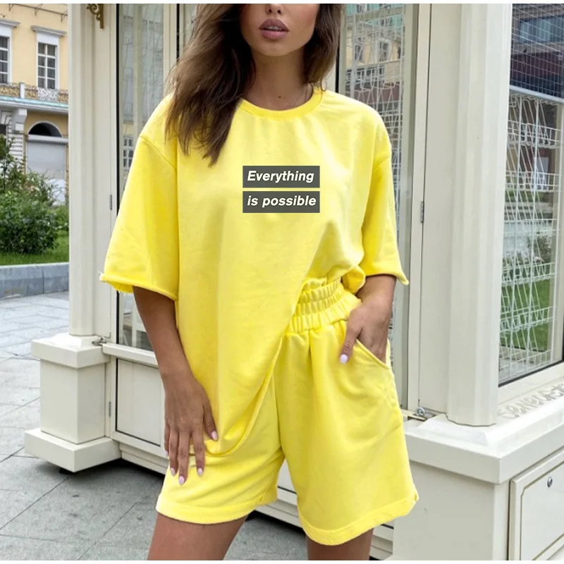 Letter Print Women’s Tracksuit Suit Sportswear Women T-shirt Shorts Tracksuits Sets Female 2021 Summer Casual Short Pants Suits