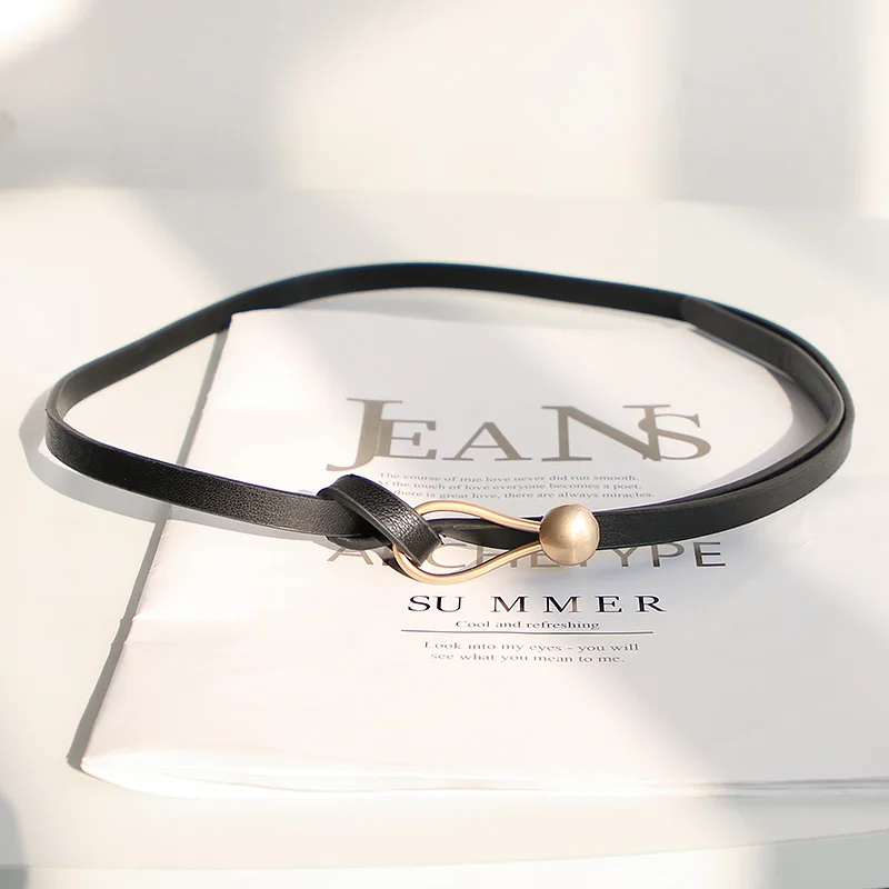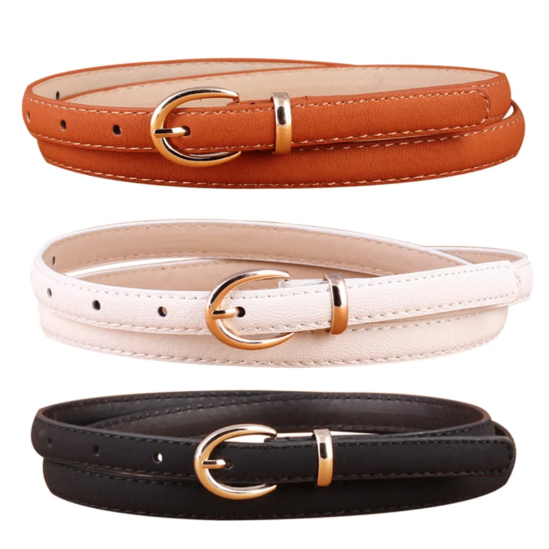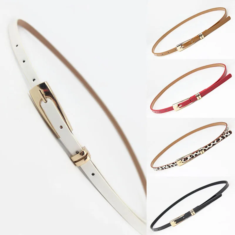 Metal Buckle Thin Belt Fashion Wild Women Leather Belt Black White Red Straps Waistband Female Dress Accessories