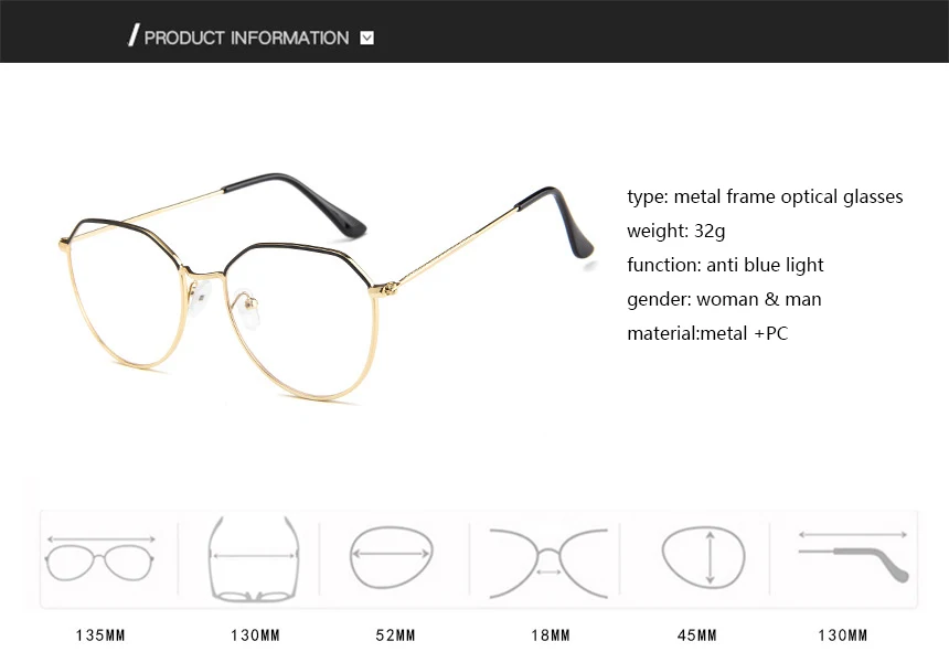 Metal Frame Optical Glasses Men Anti Blue Light Eyeglasses Women Computer Spectacles Transparent Gaming Gafas Lunettes De Soleil